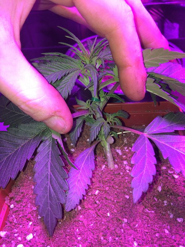 This is the third WW at 10 Weeks. It's been hanging out in the breeding box in a 3-gallon pot. It will go to a 15-gallon pot soon. The plant has been topped twice and will receive training and a trim once it is in the larger pot, then go into the double-wide for 12/12 in 10-14 days.