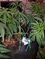 At ten weeks I have three White Widow Feminized plants. These two in the double-wide 12/12 flowering cabinet. The plant on the right is getting the silver treatment. They've been in 12/12 for about 10 days here. I'll move them to the breeding cabinet soon.