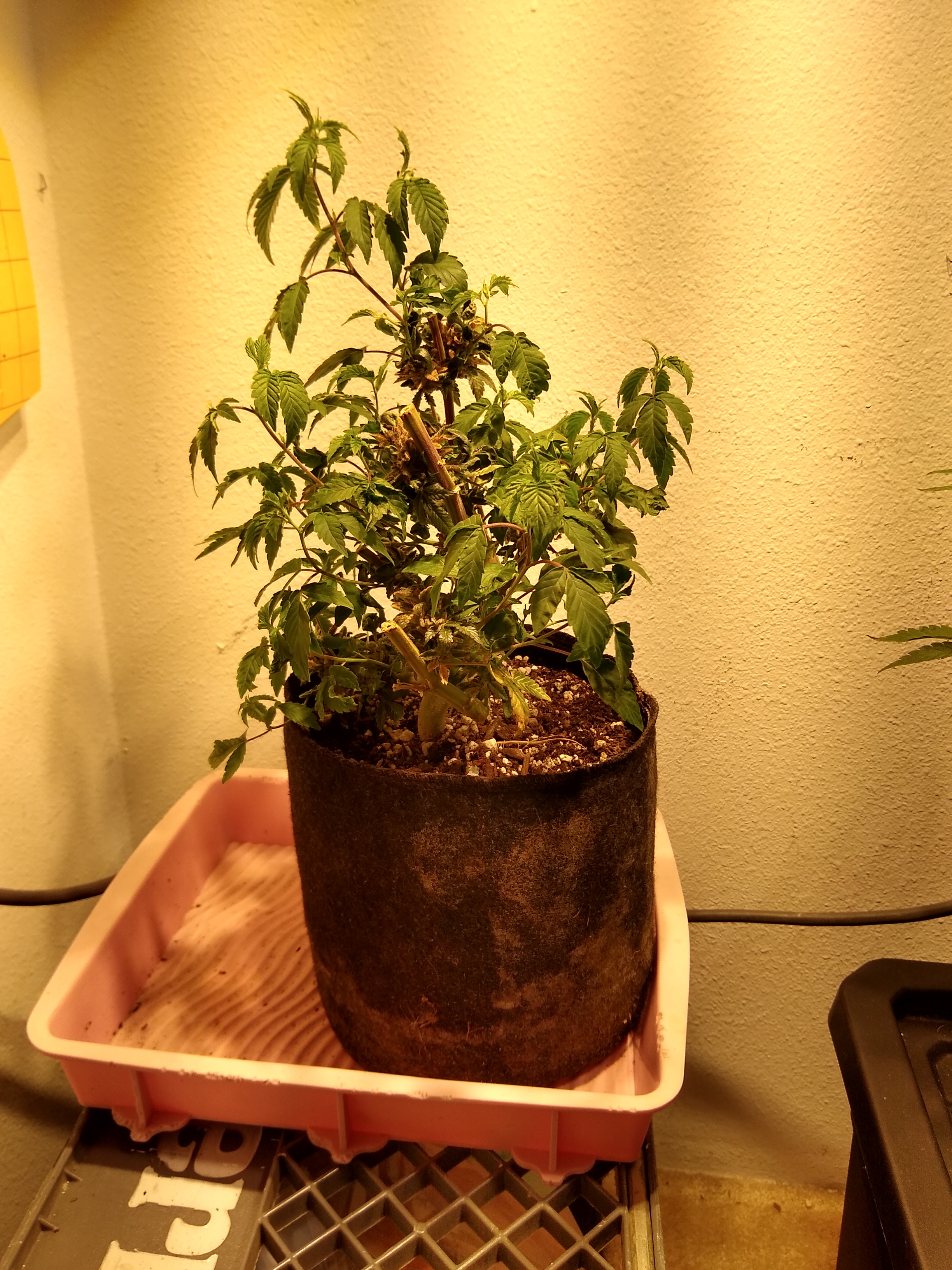 Also here's an update on SoOrbudgal Black Cherry reveg. She gave me the gleanings of the plant she harvested, still in the pot on Jan 19. She was root pruned and repotted in a 1 gallon bag in Happy Frog, and stuck in the corner of the veg closet. Shes ready for some small clones. Here they come, JDU !