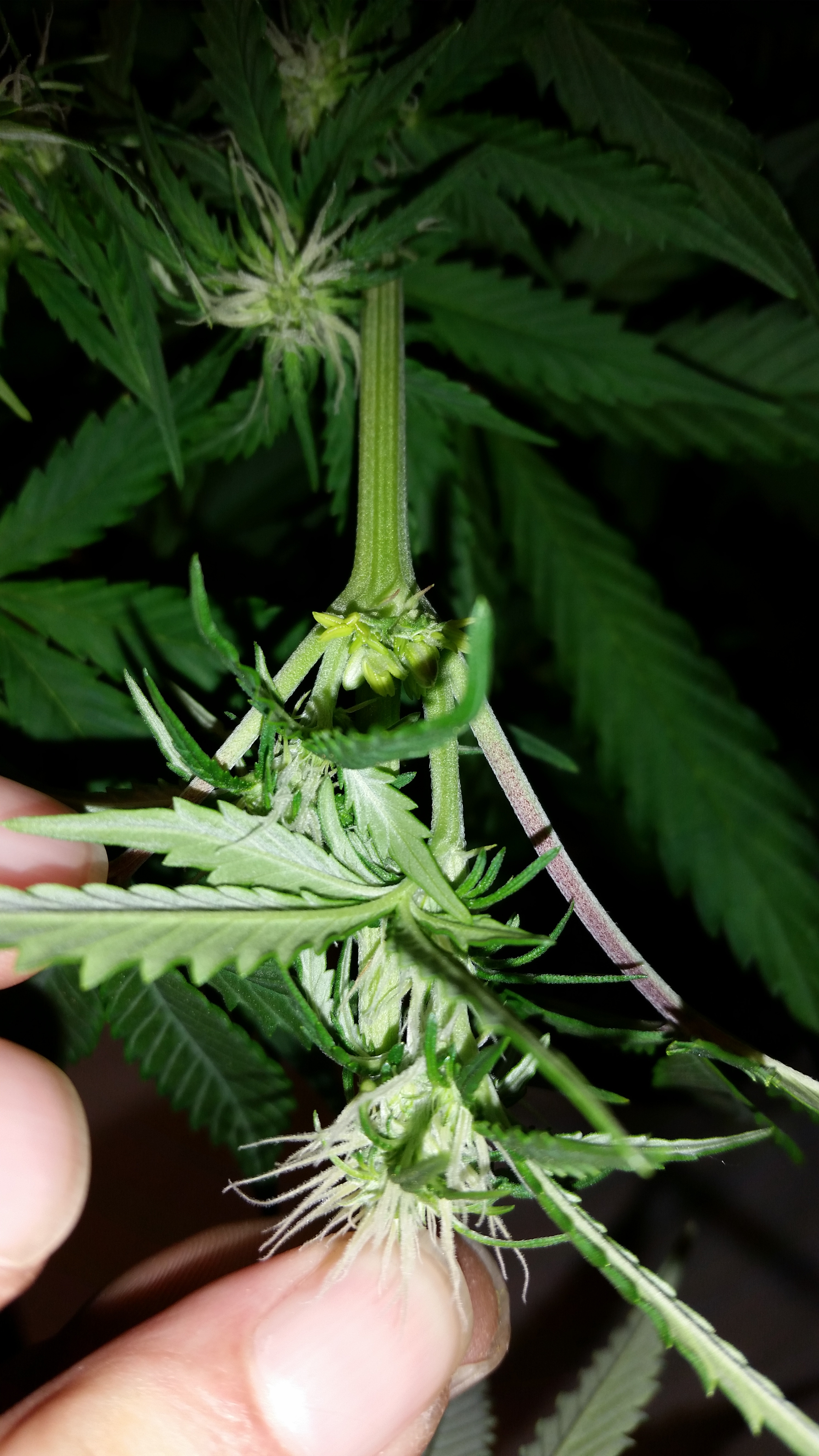 It could be genetics, could be stress, who knows. I just had an auto that was flowering away and looking pretty good until about 3 weeks into flower I caught this and upon searching found many balls. I thought about trying to pinch off all the sacks and finish flowering but it's not worth the risk, especially when I'm breeding so I chopped it down and threw it away.