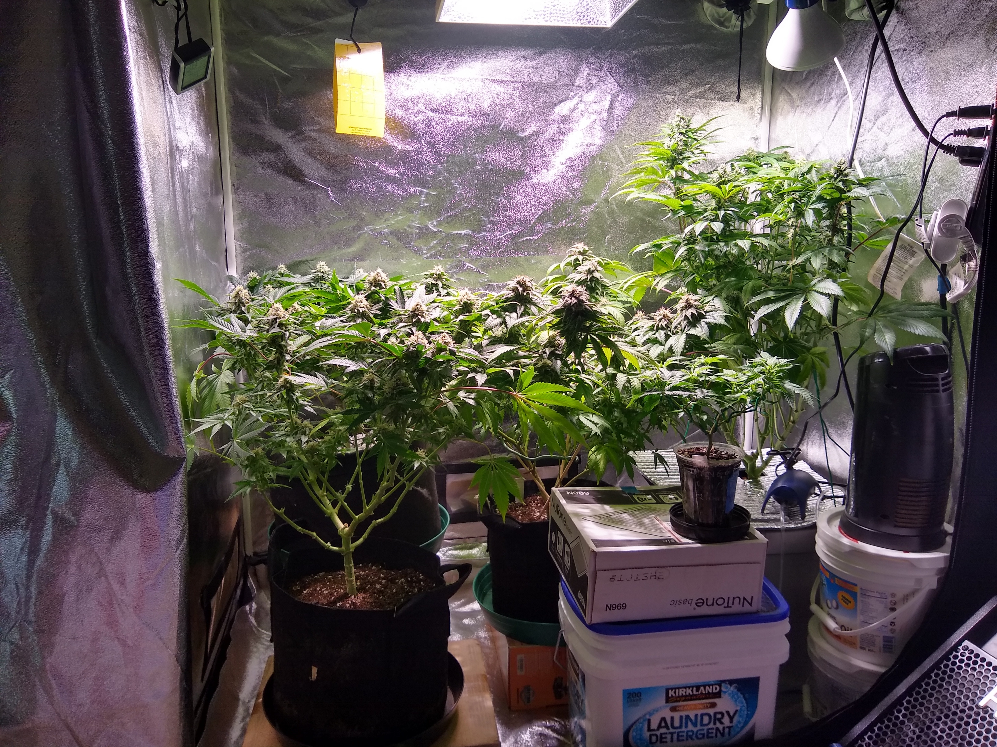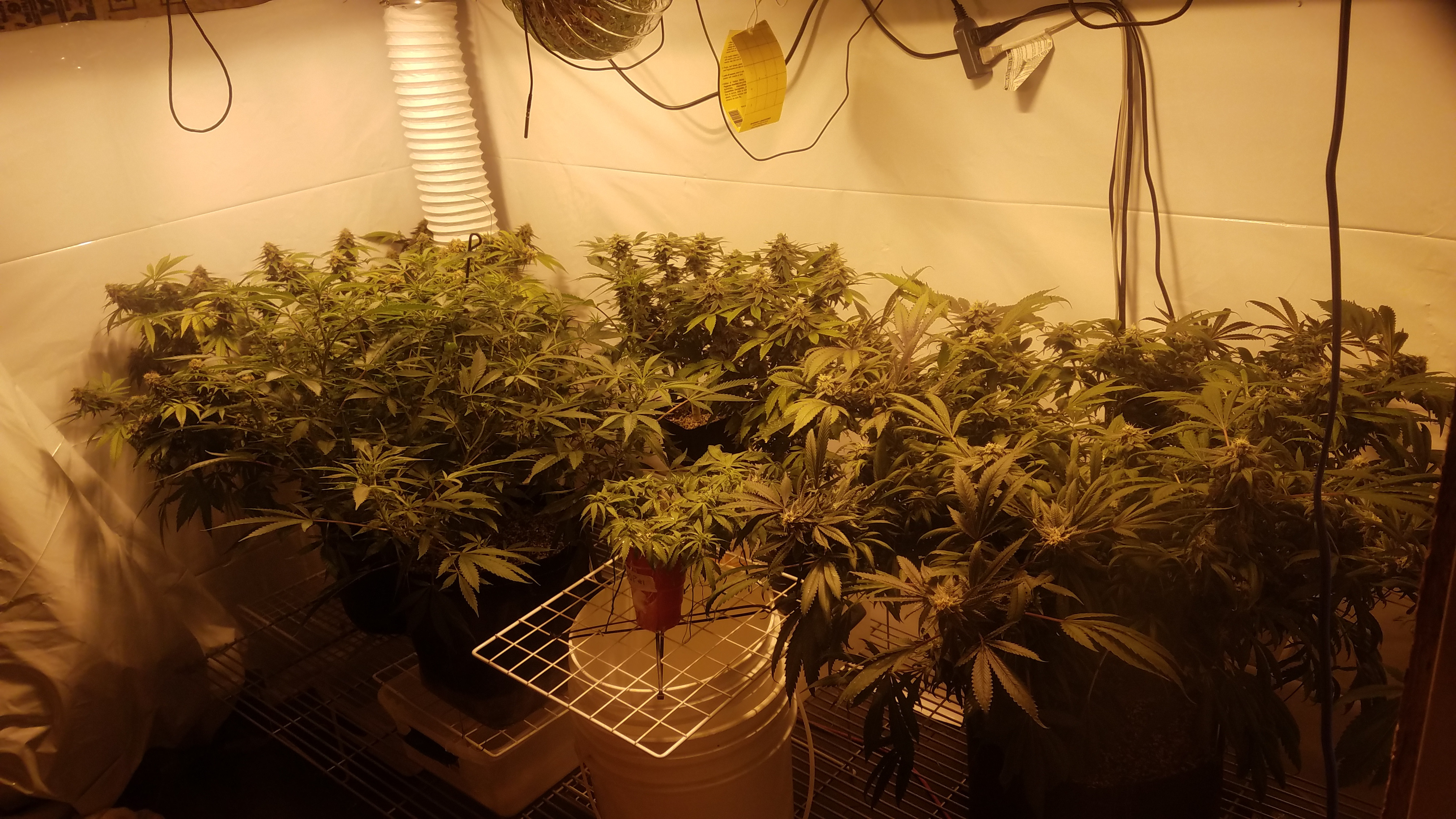 my 2 dark devil3 Photosnew grow room built summer of 2017 ,argo max tent for veging ,big kahuna reflector, 1000hps with added leds for the full spectrum . 15th indoor grow ,5 years outside gorilla grows(stealth is the key),veg under t5s growing autos under 300w leds