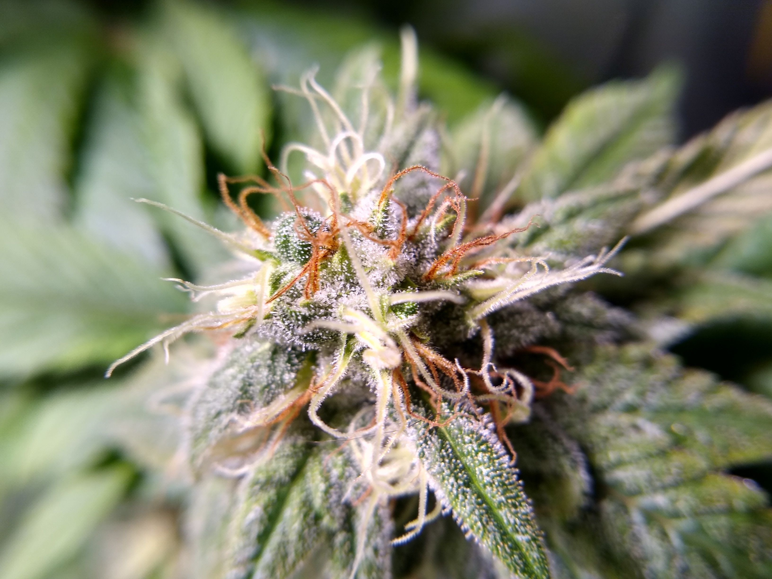 The gher in week 5 or 6 of flower, not quite sure. But whatever, Mango is getting after it, already turning vibrant orange, and frosty in the middle with her solo clone daughter under her wings.
