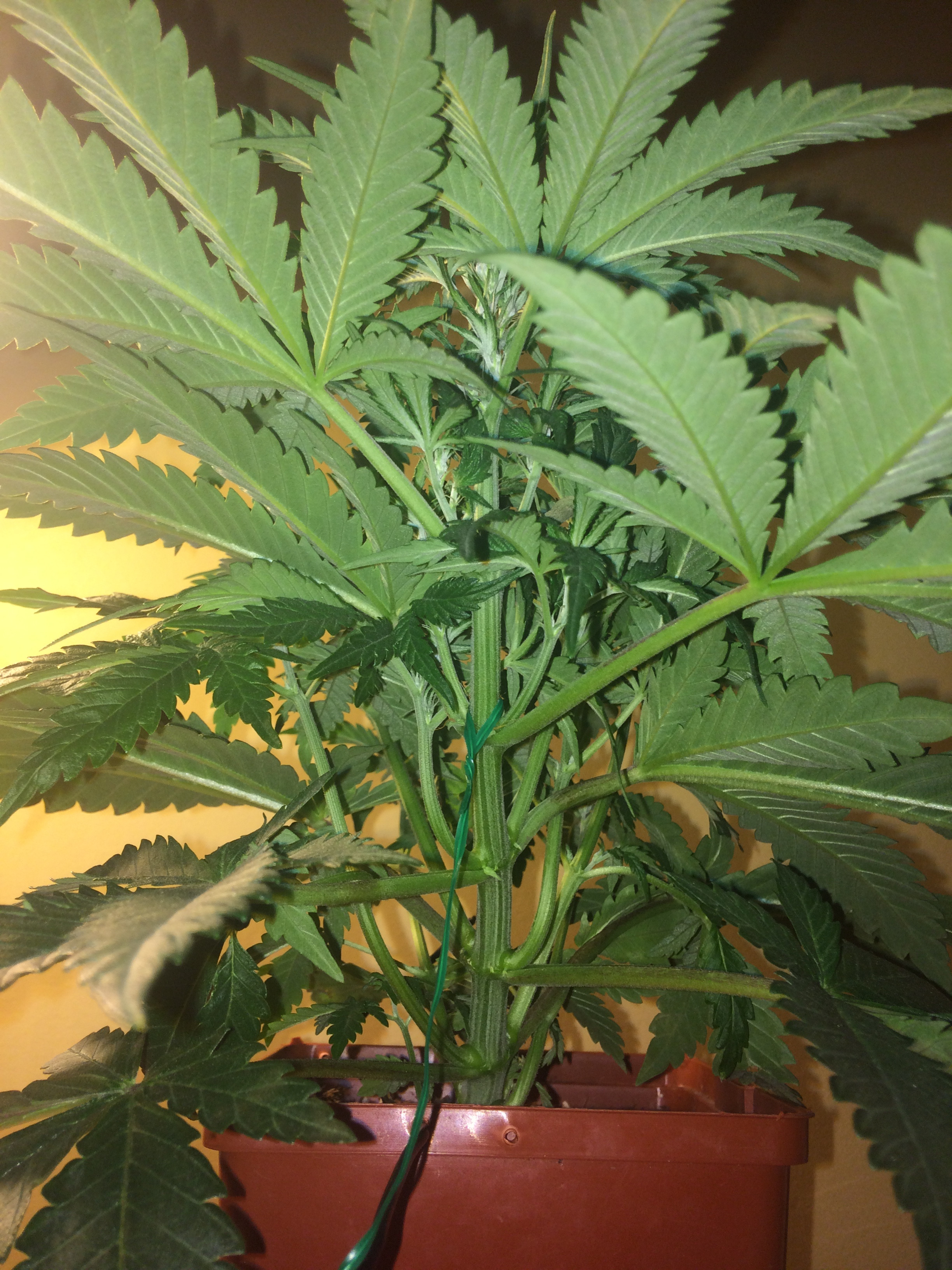 Got nervous about hacking leaves off of autos. Been tucking leaves and tying it down, may do more tying, but dunno how I feel about hacking shit off after my last batch freaked out.