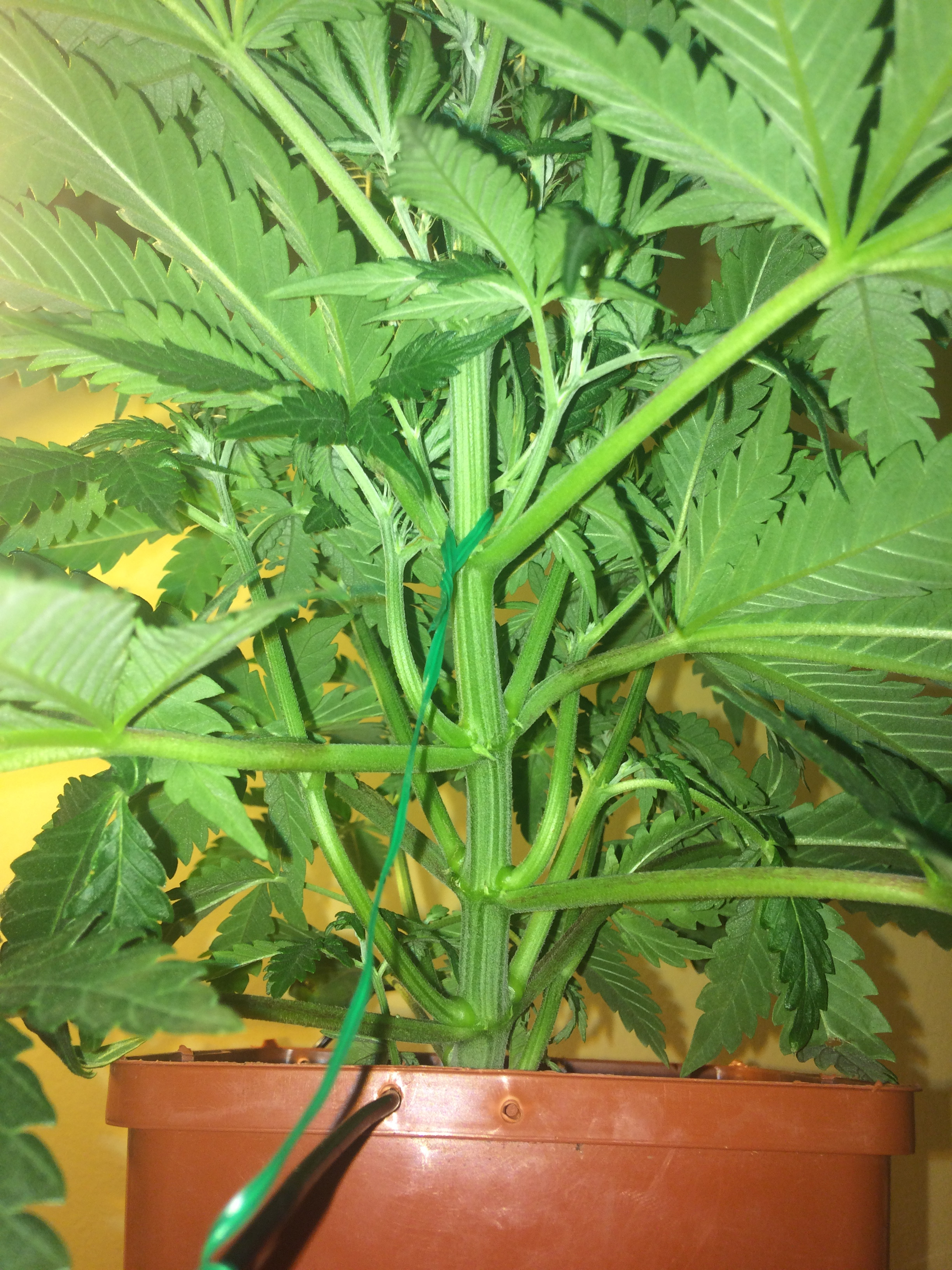 Got nervous about hacking leaves off of autos. Been tucking leaves and tying it down, may do more tying, but dunno how I feel about hacking shit off after my last batch freaked out.