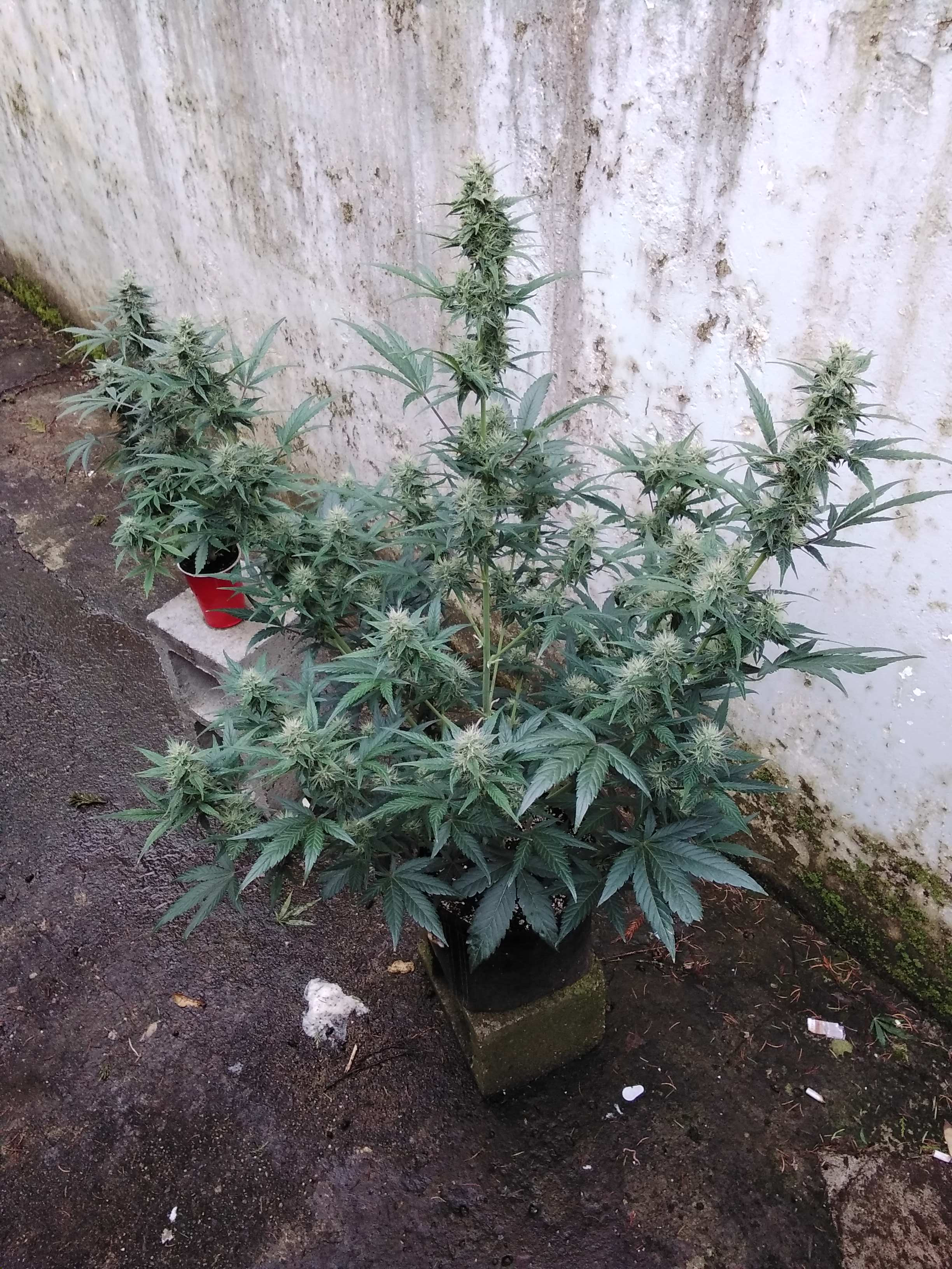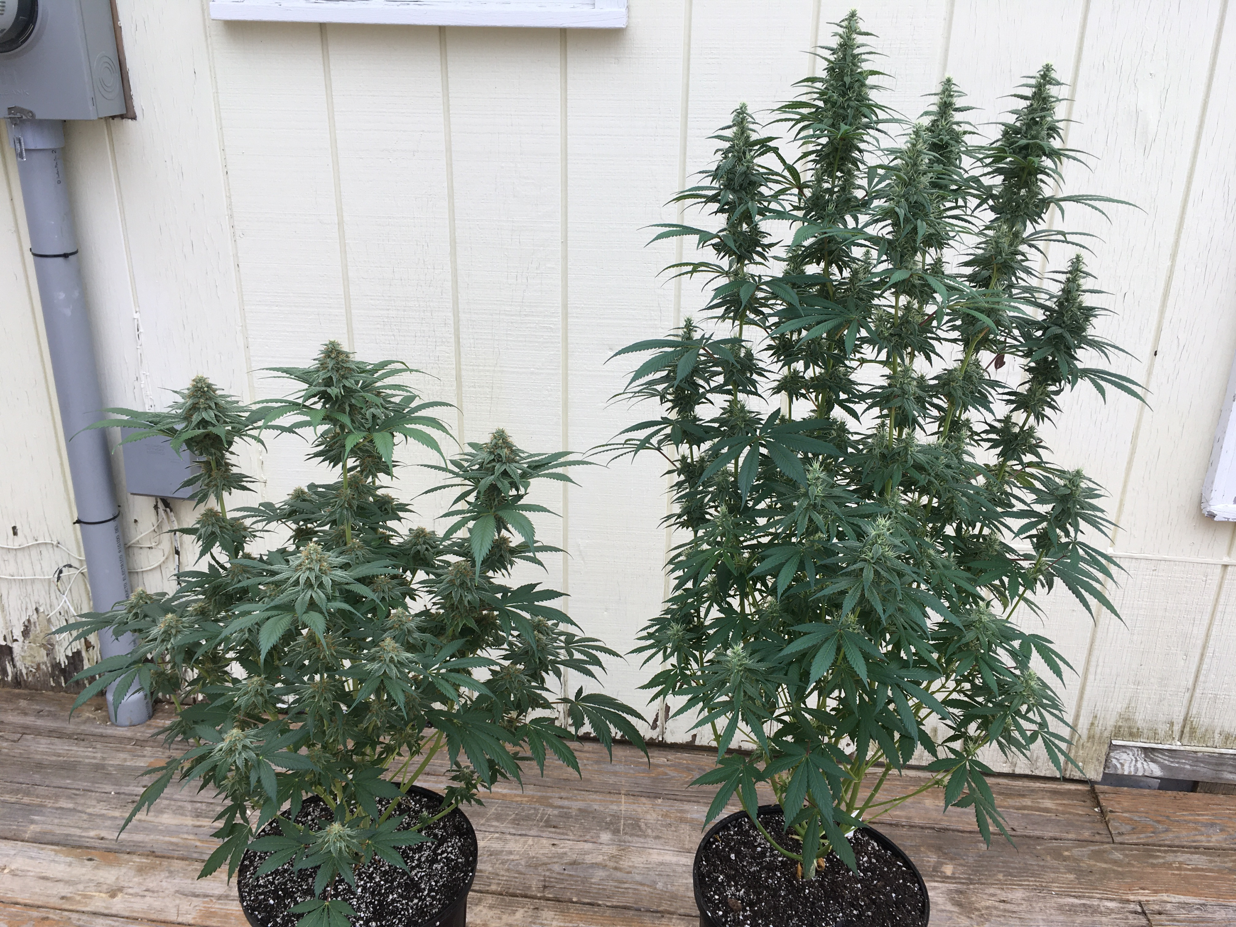 Autoflowers - sativa is Maui - teeny tiny is solo cup entry Sister Glue - both plants are 60 days old. 16 and 32 inches tall. Both have stopped growing vertically and are filling in the many bud sites. Looks like I'm going to have to find my bamboo stakes cuz this Maui is gonna need some support for heavy kolas. Darn.