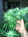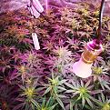 Well here's my contribution to greenhouse gas reduction...lol. Shits getting crazy up in here... Tent is completely packed. I'v got 4 autos well into flower..3-4 weeks from harvest, and 6 photo's popping flowers now. Dealing with a small issue of WPM, so all got treated, and i sprayed the tent as well. I'v been trying to bend long stems without doing any damage like super cropping..so far im having great results. Same results as super cropping but quicker response.( im guessing thats because they dont have to repair the damage from fracturing the stem during super cropping). Oh and i also have a new baby..Hindu Kush. she was a replacement for a failed seedling started same time as Solo GG#4.