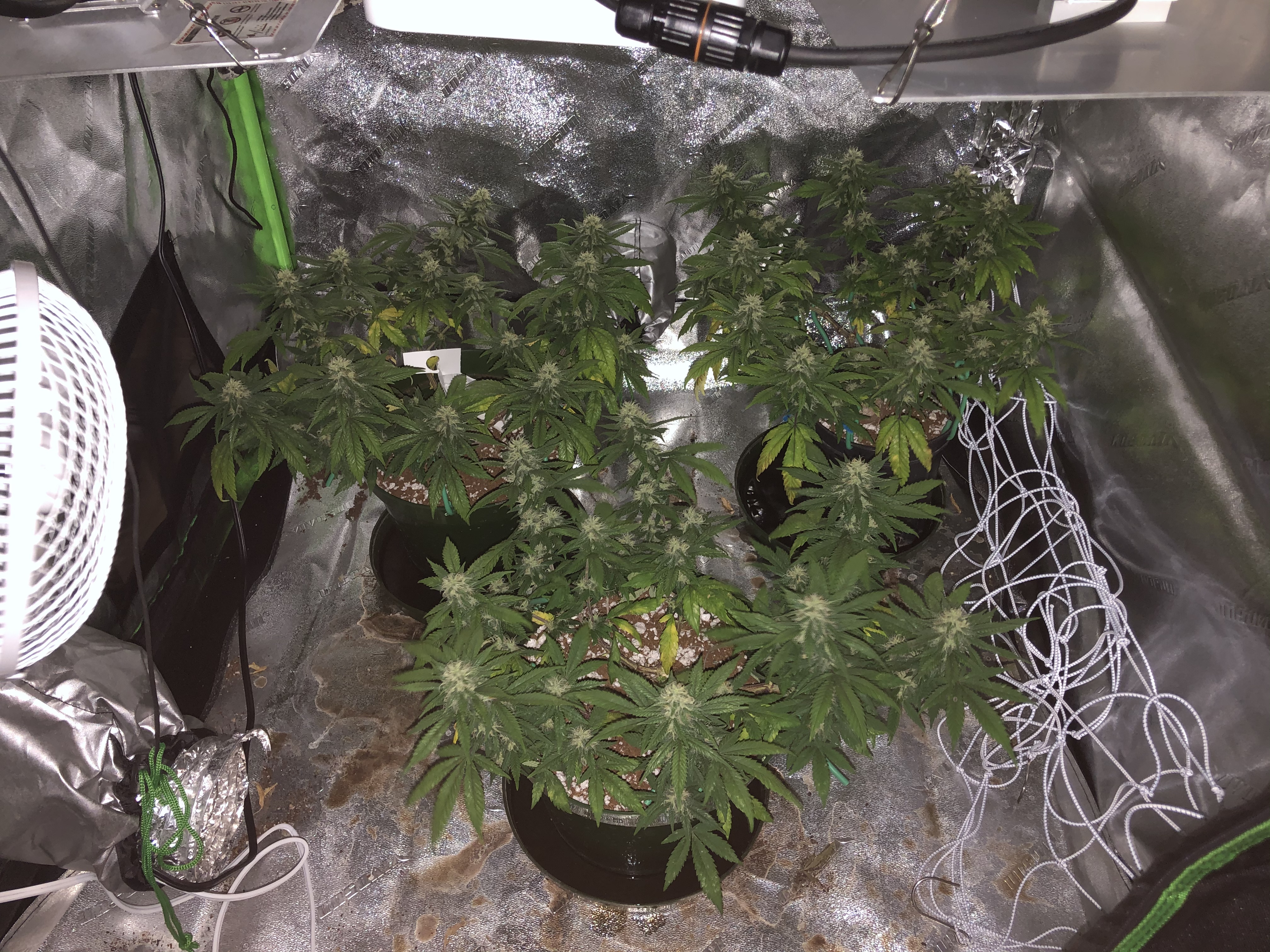 Got a couple black sugar girls 2 are mainlined ones just been pruned into a manifold, 5th week flower Tuesday 1 250 w Cobb centre spider farmer sf1000 left lenofocus quantum board on the right all in a 3x3, 4”intake and outtake couple fans inside to for good circulation. Coco and pearlite... also a pic of a recent black sugar harvest. Love thee look of these budss