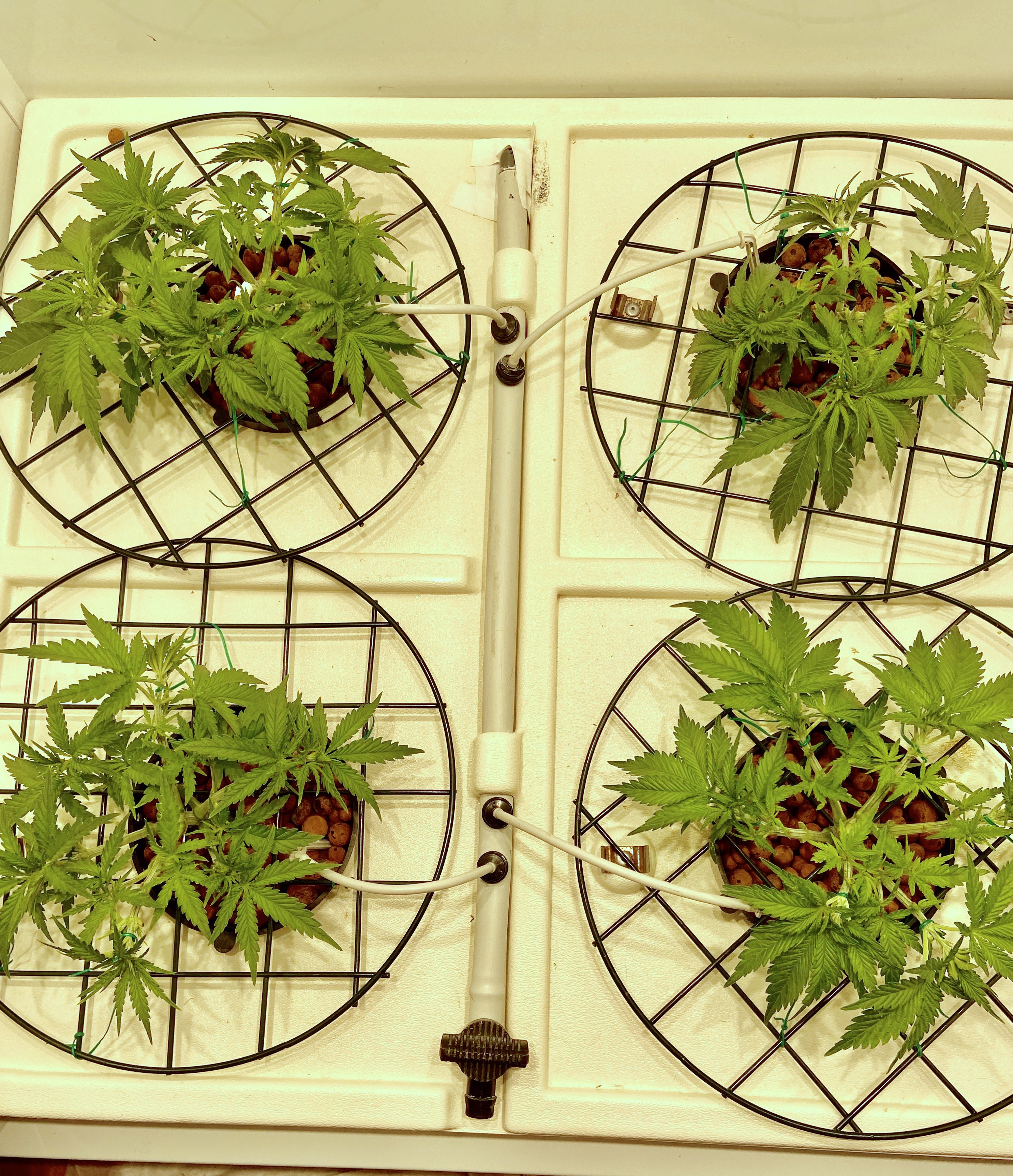 Thanks oldjarhead100, lol the little wild child is an auto Hindu Kush that came late to the party. She's just flat and bushy right now cause im trying to lst some of her longer stalks. And that Cola sticking up in the tomato basket is GG#4 solo cup entry! soaking up the light for a couple more days.