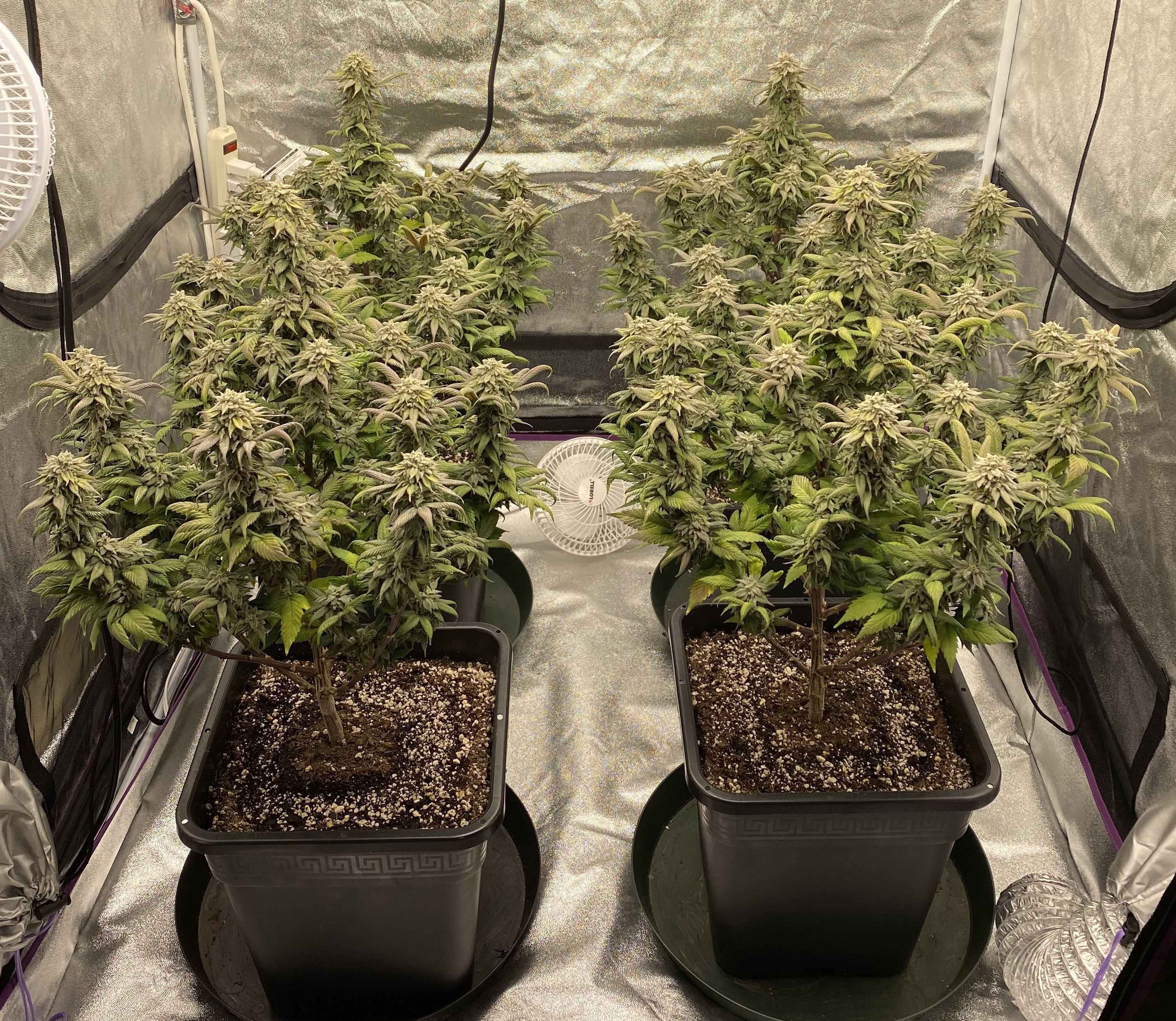 Morning from Oregon I thought I would post a update on the folgers gals. These are autos strawberry cheese cake x lemon skunk in my own soil mix. They are under 2 viparspectar 450 full spectrum at about 20" from tallest cola. Currently they are at 9wks total. The one with the lighter is maturing quicker than the other 2 I do shift the order around mainly lifting to see if they need a drink