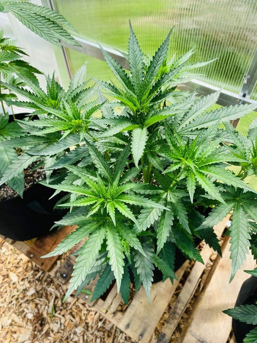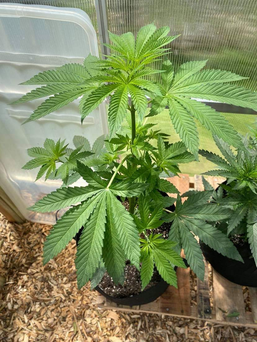 2 OG kush and skywalker triangle(?) plants and 2 autoflower, lemonberry haze and pineapple express. Started indoors under a Marshydro LED and moved all outside a week ago to the newly finished greenhouse. They've all taken off once outside and the 2 autos are starting to flower, at least I think so. My first grow. Pics were taken by my wife, she's been helping a lot with them.