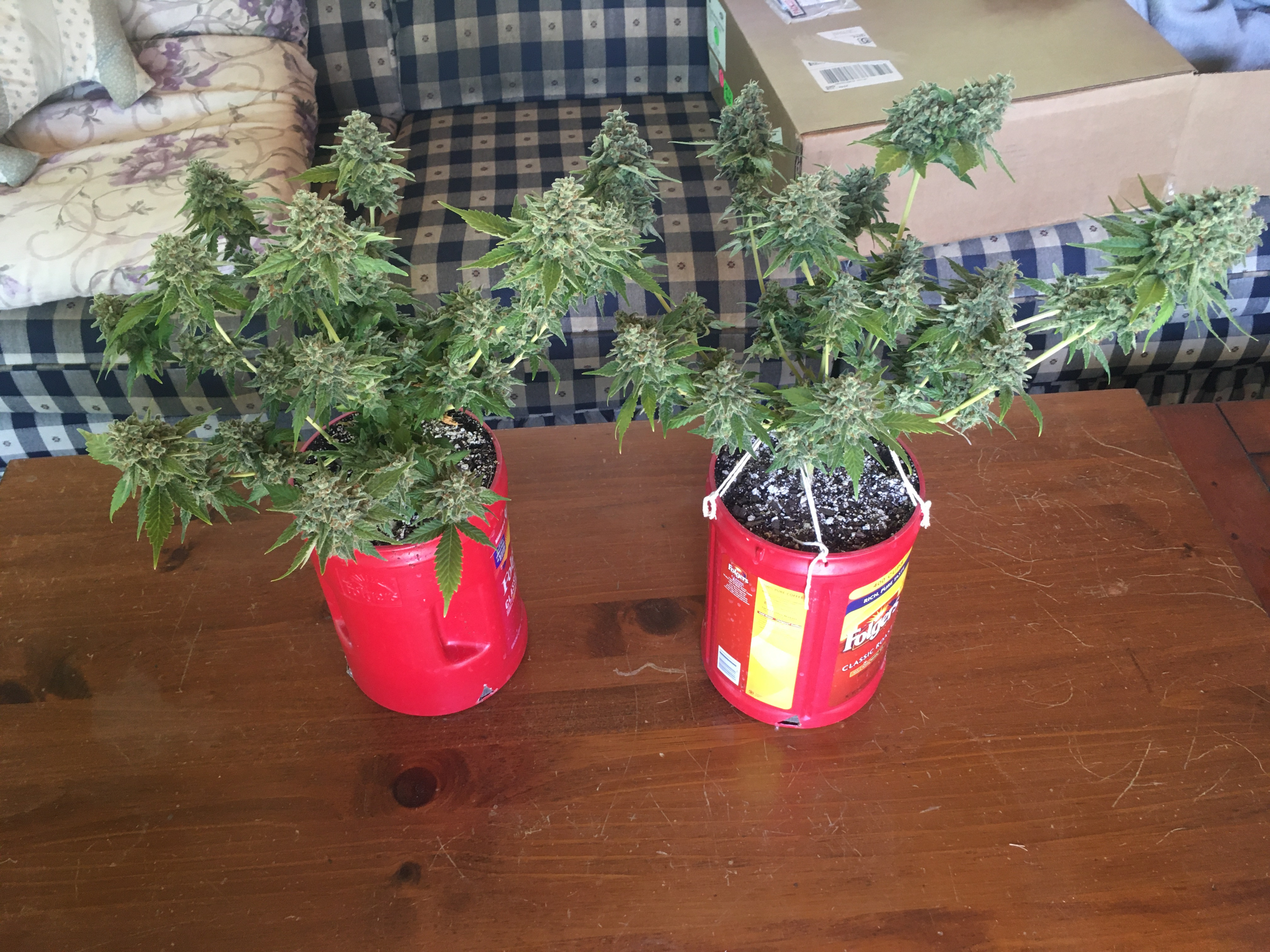 Everyone posting pics of monster looking plants...well here's my coffee can wee little girls at 9 weeks since flipping. 10" tall now (g), they were 12"