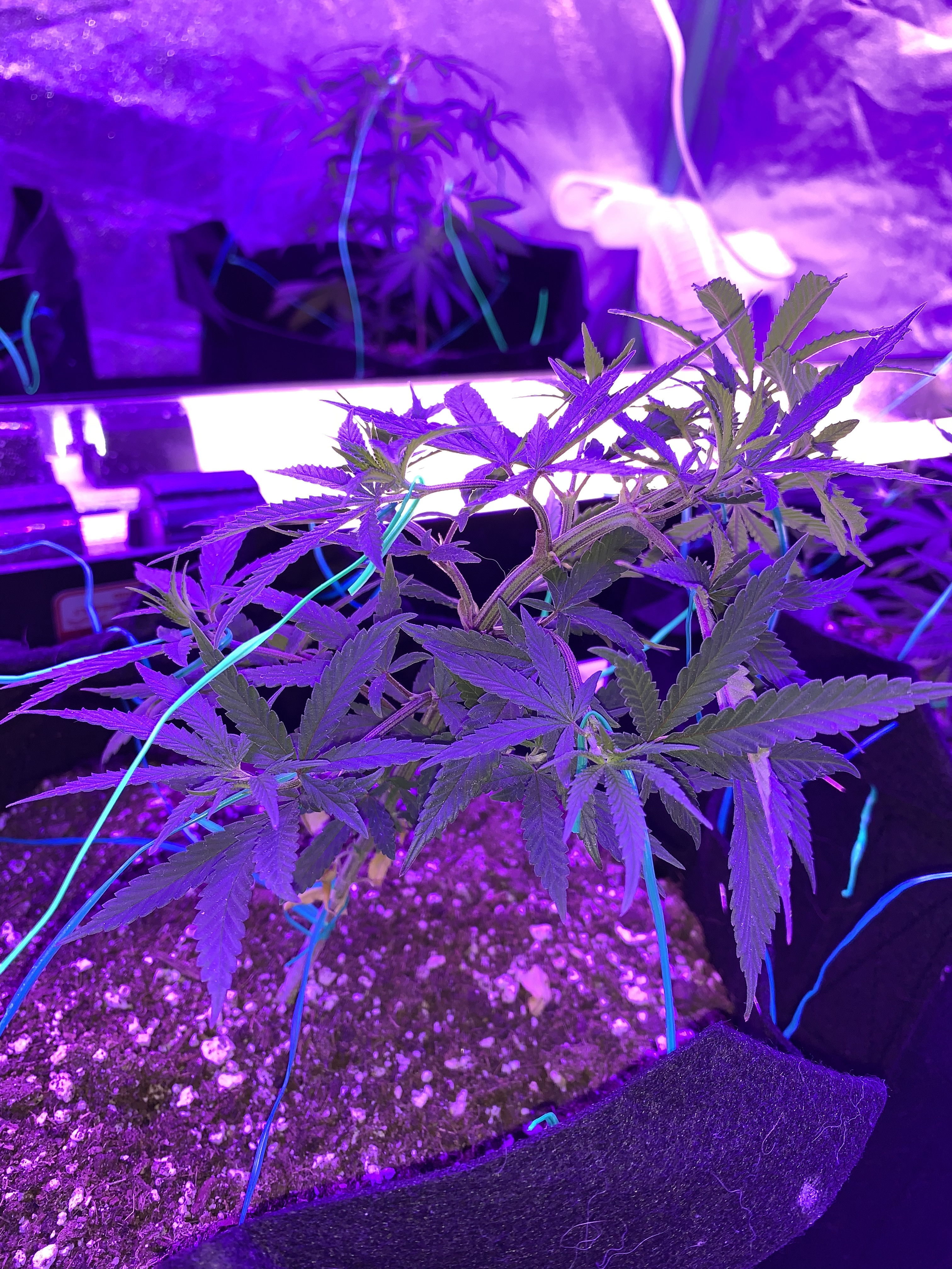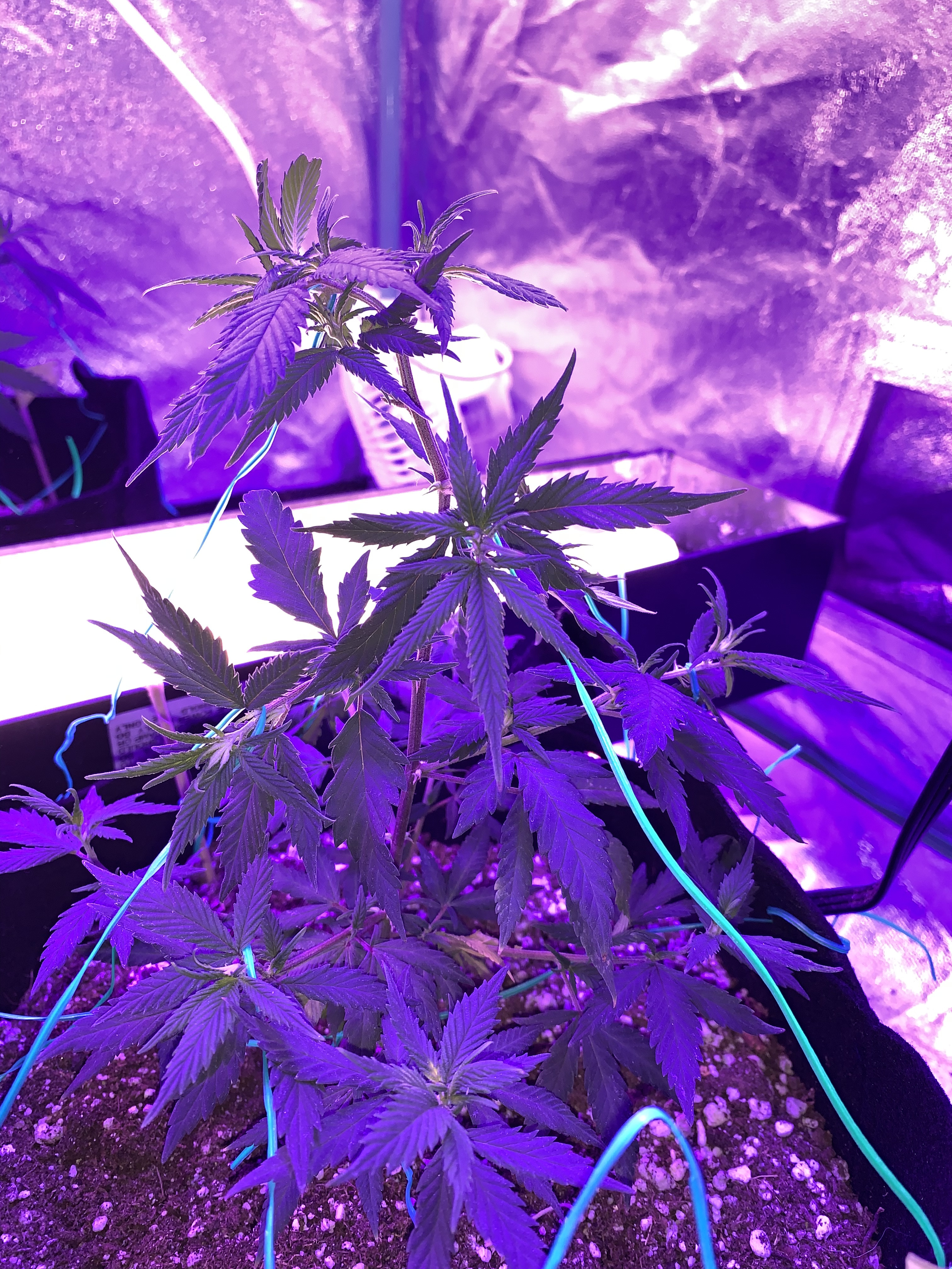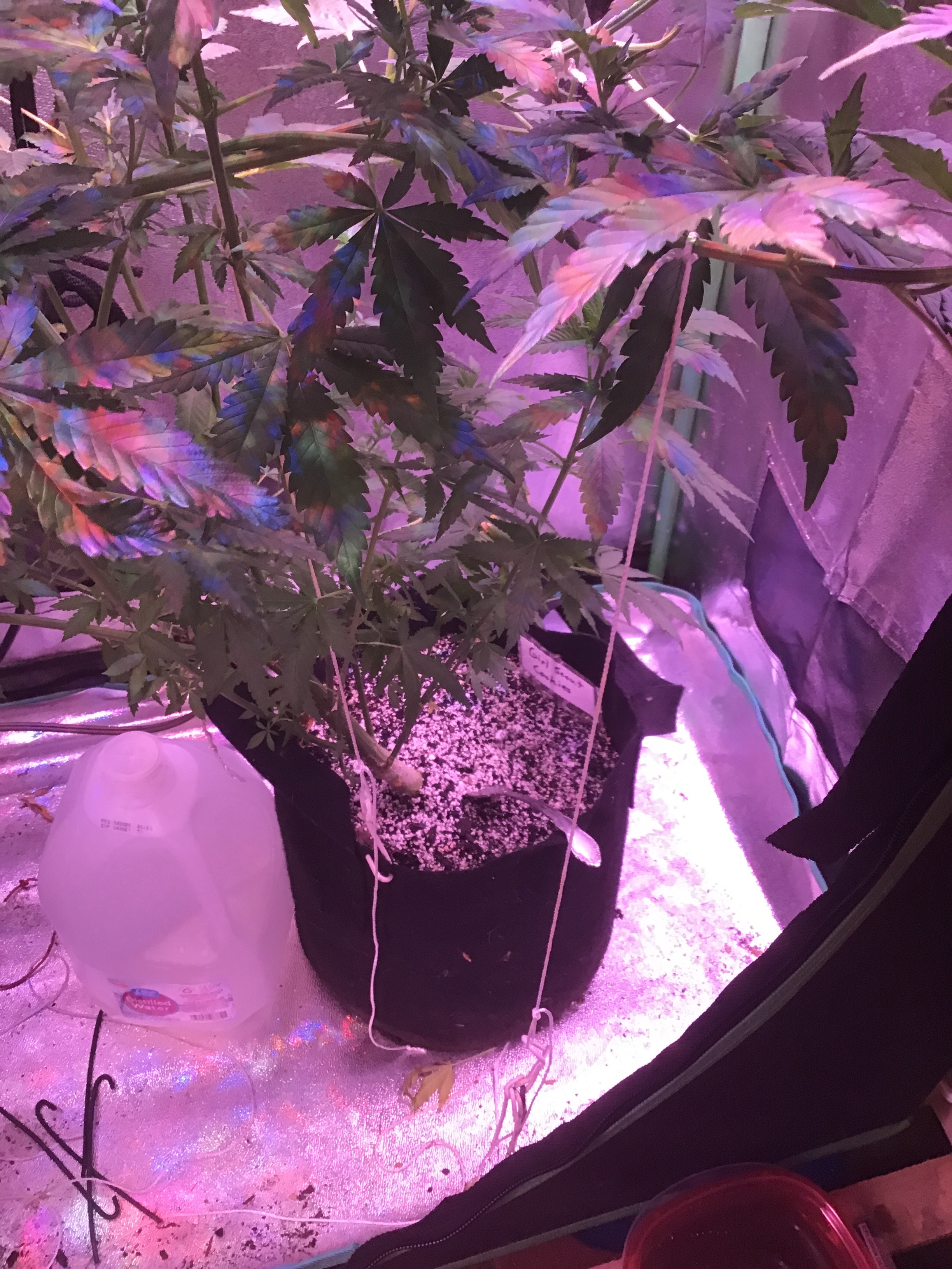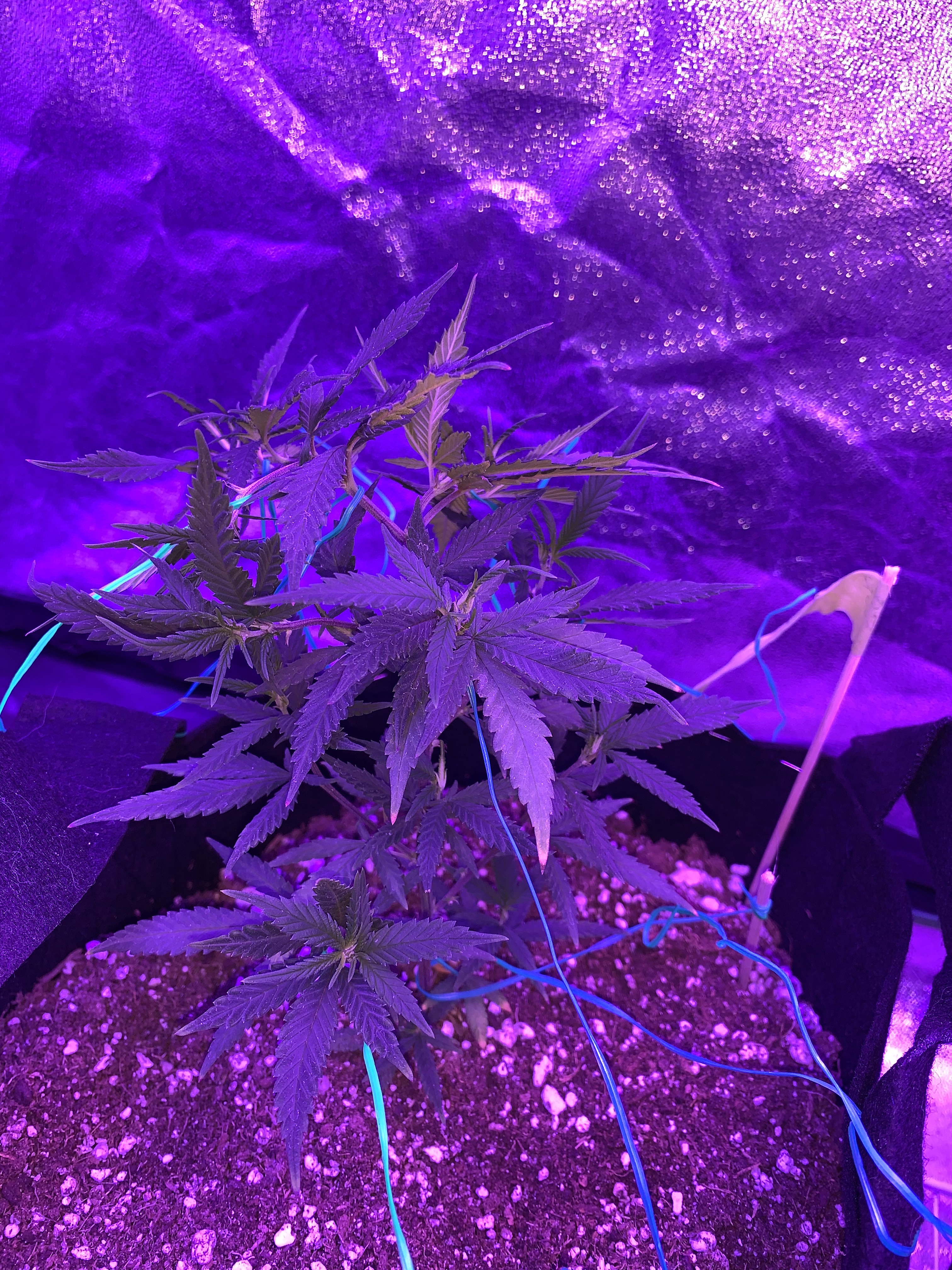 PRIMO I liked your post and seen you use romex wire like I do. I was supposed to be growing a GSC auto in my tent, but she ended up being a photo of some sort. I just haven’t had the chance to move her outside with the rest of my photo grows. She’s topped after the 6th and thought ya might have a laugh at my tie down method in my tent considering I’m not using stakes outside to train her. In the 2nd and 3rd pictures you can see too how I use them as weights. She’s 9 weeks now in veg. Total height is 38”, width is my 4’ tent. She’s been running on 24/7 light. I’m debating on going ahead and putting her on 12/12. I still wanna transplant her outside tho.