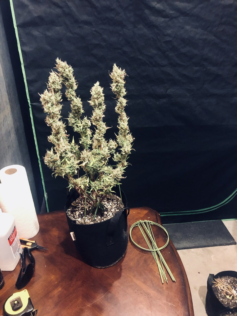 I placed a top screen to support the colas. The plant on the left and the two in the back we’re vegged 10wks while growing some autos so they’re over 3ft tall. The three upfront i only vegged 4wks so I put them on a table to bring them up to the canopy. I defoliated right before the switch then after that I’ve pretty much let them go. Normally the lower half’s would be stripped more, I just had two much going on at one time this grow between this tent and another I have. Other than the bag seed clone on the left these are all from seeds I ordered online which was a first for me because I was too nervous to do so before. That was in March then in April they had a 420 sale so I ordered more lol Next thing I know I’m buying a bigger tent (only had a couple 2x4’s previously) another light and exhaust fan cause I have all these different strains I want to try but don’t want to wait two years to grow them all proper. It’s been a adventure and learning experience. I haven’t had this much going on at the same time since I first started growing over 15yrs ago.