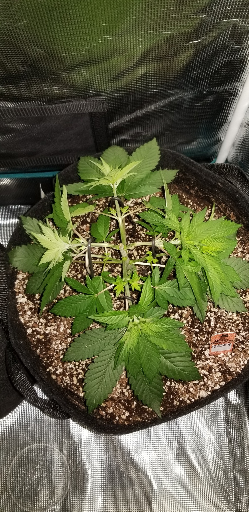 Hi oldjarhead100, pics 1 and 2 are before and after defol + Lst. I'm just going easy right now with the defol until they finish stretching and training. And i'v been using the soft ties to mimic a supercrop, without actually having to damage the stem at all. The plants still react the same, decent canopy, all the bud sites head straight up, tip turns up, and the plant doesnt have to spend any extra energy repairing itself.. Errrr thats what im thinking anyway...worked well last grow.