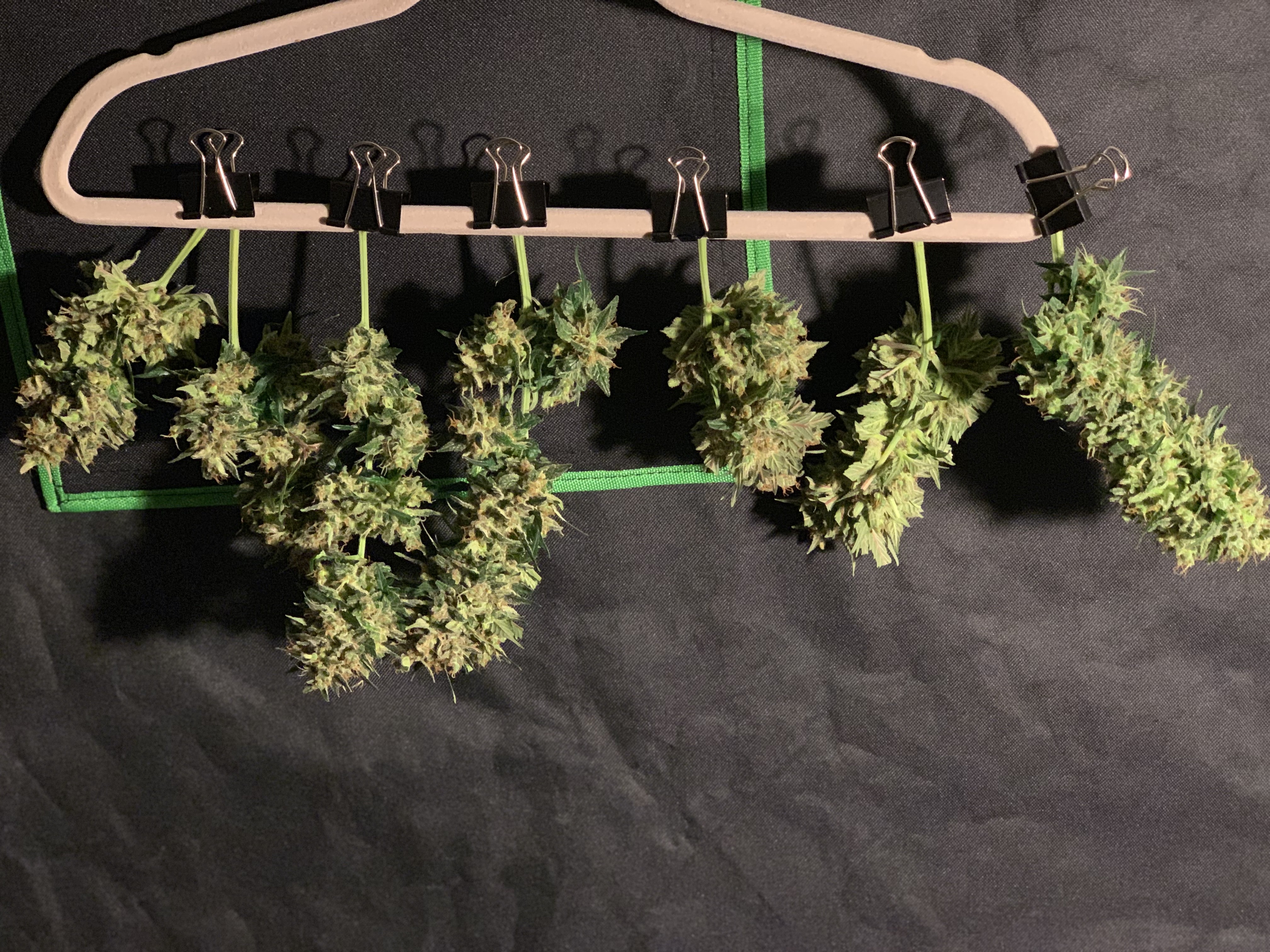 Thanks, s62. I've heard about the cardboard bit. For some reason I can't get out of my head that my flowers will taste or smell like cardboard. I've decided on the kitchen paper in pyrex option. No worries about wet spots and they'll be easy to stir during drying. My first harvest was a learning lesson as I put a fan directly on the hangers. The outsides of the buds were going crispy while the insides were still pretty wet. My veg chamber might be ideal. One muffin fan exhausts to the top of the tent while bringing in fresh air by opening the tent flap at the bottom.1 PhotoC'mon, mule!