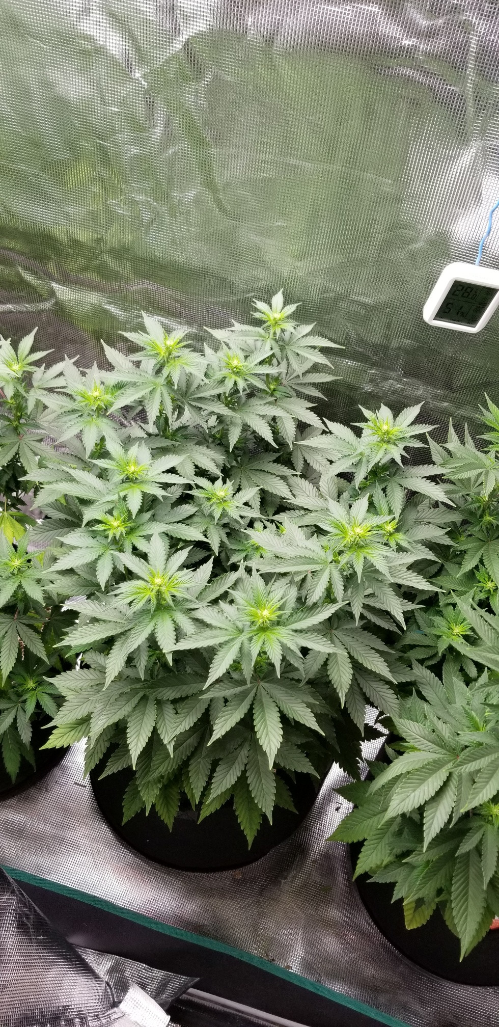 And this box is around a week or so behind. I have two plants in here with four main colas (cuz of some errors), and I'm hoping they get monstrous. The other two are the traditional 8 colas.
