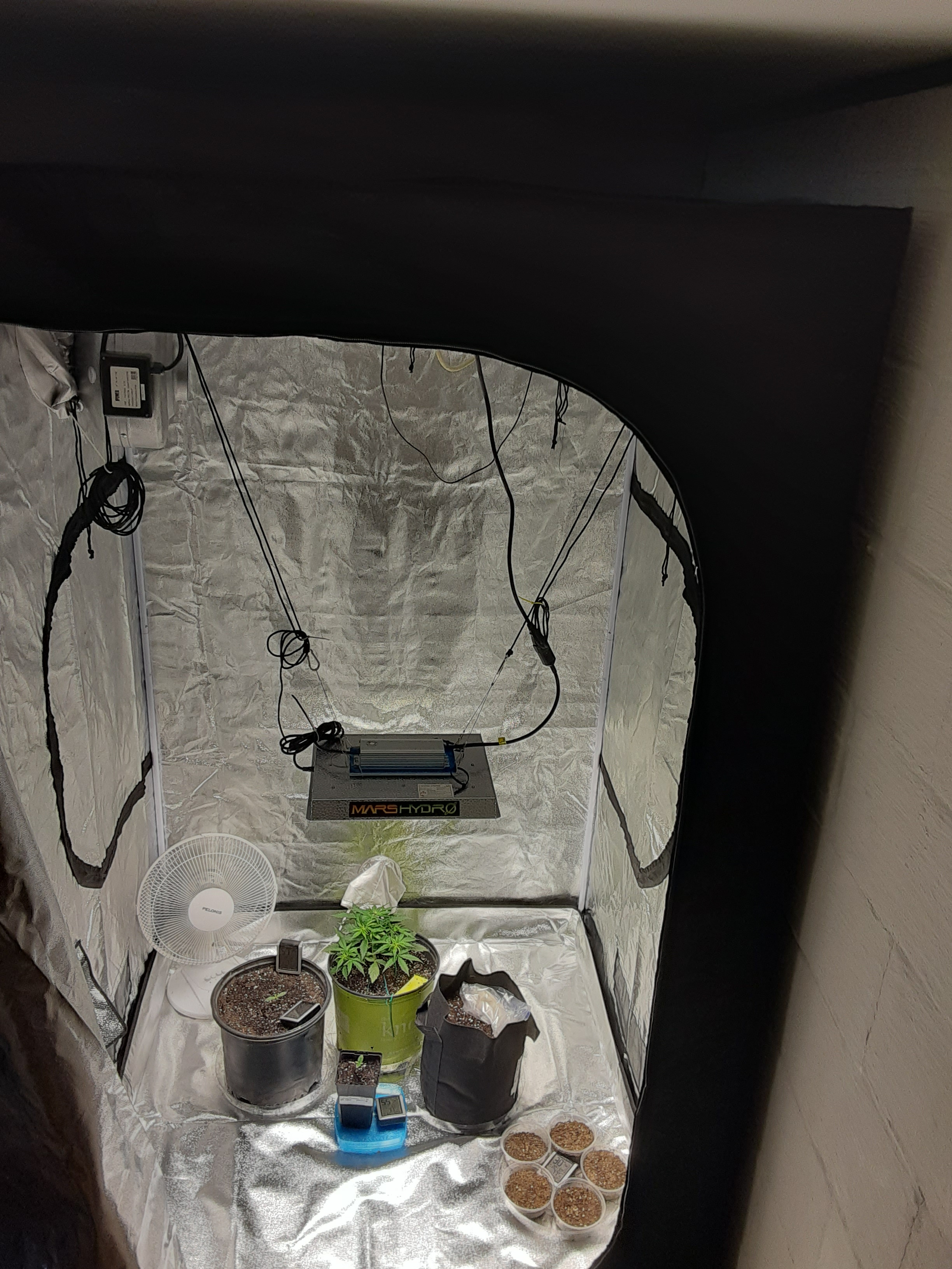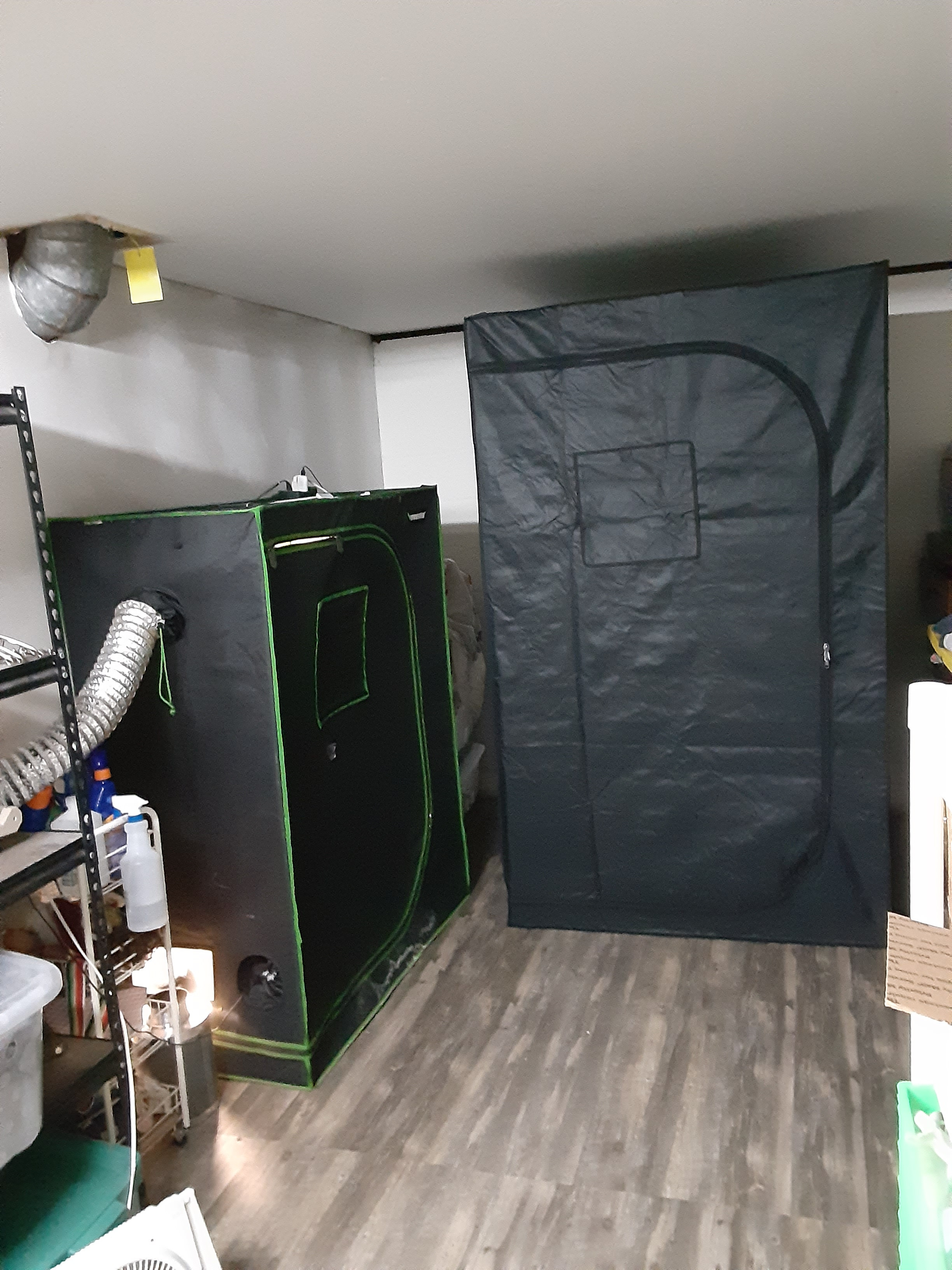 I tried to upload another photo of my veg tent with the 2 vipar veg lights now doing great job got 4 GSC in that 3x3 waiting on this flower tent which i now will speak of.........Those are 3 auto la berry fruta reg. auto seeds so waiting on sex. Those other 3 are photo period Black Domina front and 2 back are the Tangie X from ??? LOL BD is suppose to be a short time in flower according to several strain sites. So I'm hoping for end of month will be 60days flower on her and the others. BD is 50-60day in flower, she is alittle over 13wks from seed.