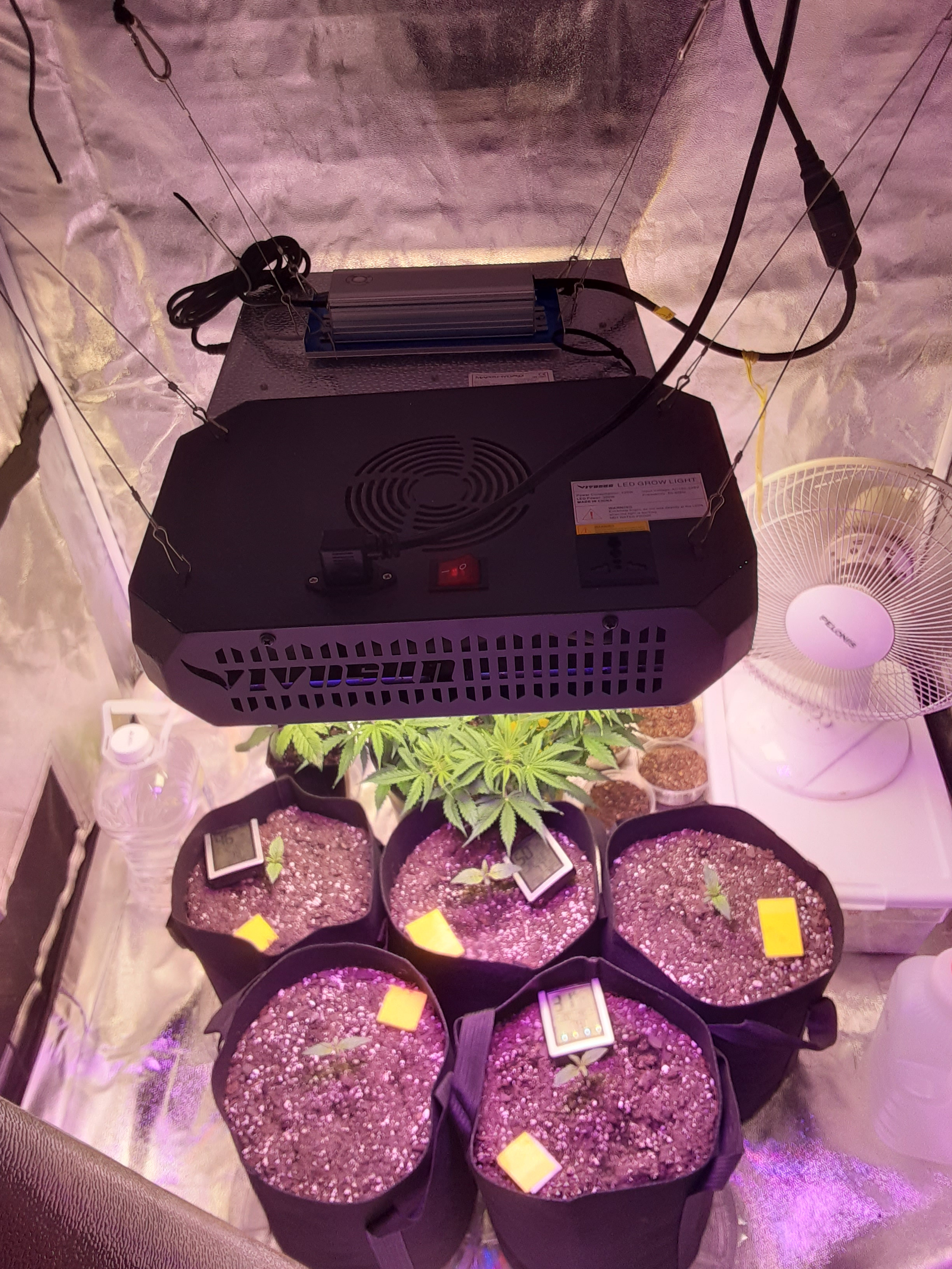 the bigger one is gorilla glue auto 33days, the one in small pot is lemon cookies 15days (bag seed) that is for friend. Friend is also getting my vivosun 2x4x5 tent w/ vivosun 300w (135w) with the lemon cookies plant.