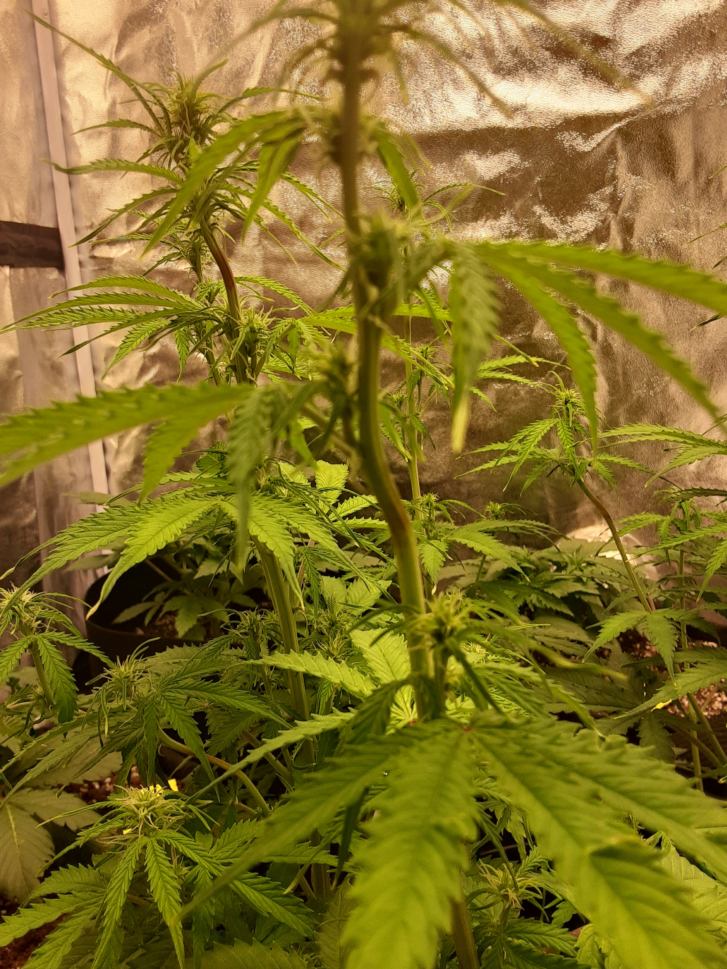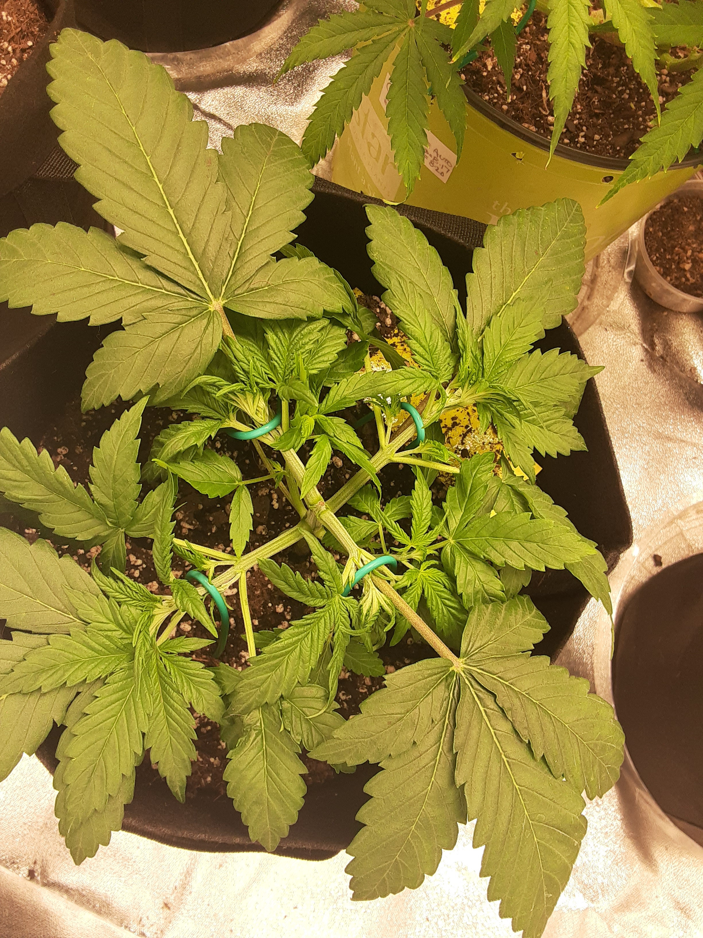 I kinda super cropped gorilla glue auto. Idk but to me its barely been growing the past week but I'm sure it has.i just want them fat buds to start forming. Its has stretched.. I was afraid I stunted it with the light or light burn. I feel like I'm pushing it with the light.