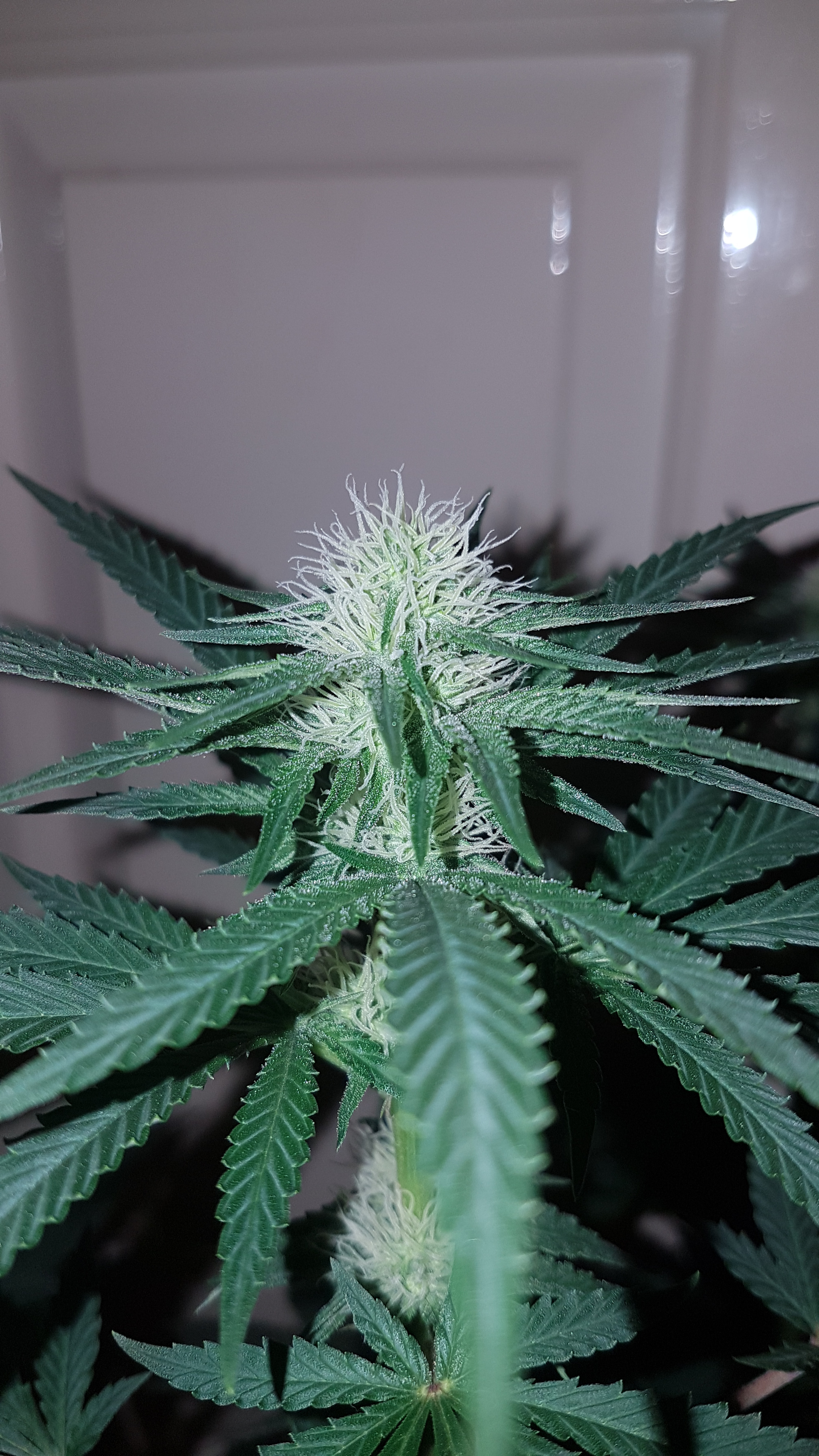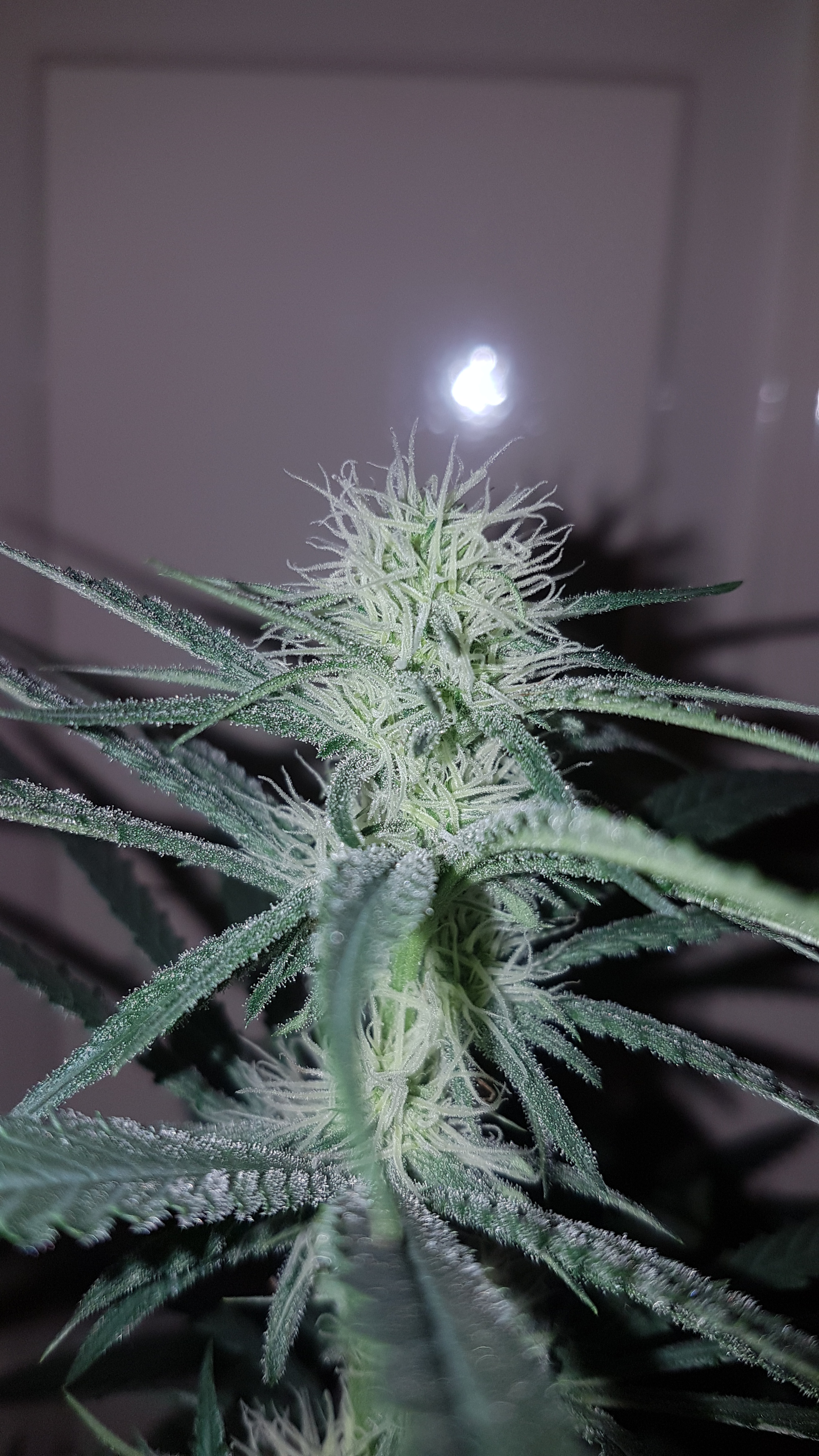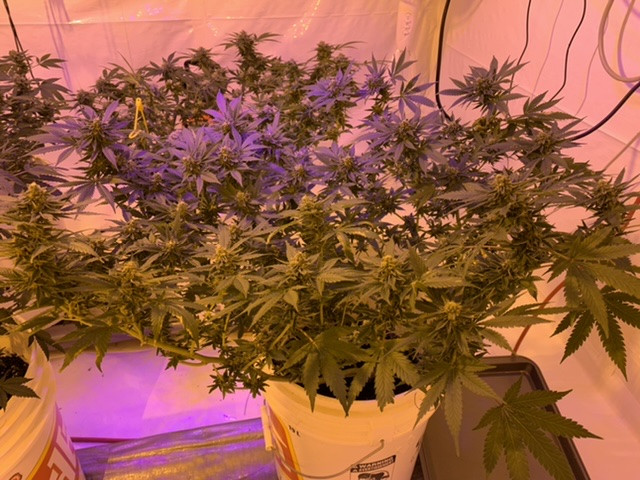 So while I was painting my house( should have never started that project) in the end of August I started feeling sick and weak. Tests for Covid were negative but the Lyme tests were positive and I was taken for a wild ride. Could not do anything and had started a new crop in July that remained un attended. Thank goodness they were Autos and something called Black Label CBG. Other than watering which thanks to oldjarhead100 was near automatic and the timers were on for 18 hours. Took this picture about 5 days ago. These are oddly VERY dense buds, heavy in the hand, smaller colas than most of my previous crops but I did nothing but let them do that auto thing. The frostiest along side those black cherry punch last winter. Click image for larger version