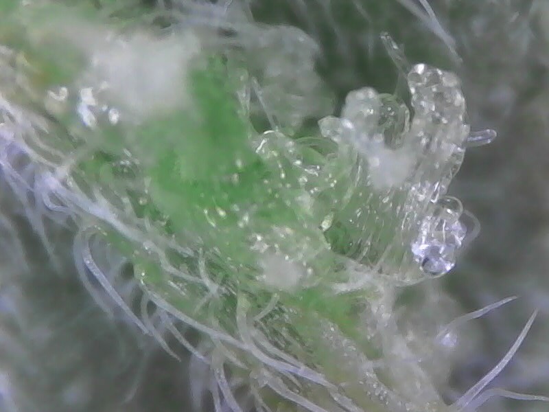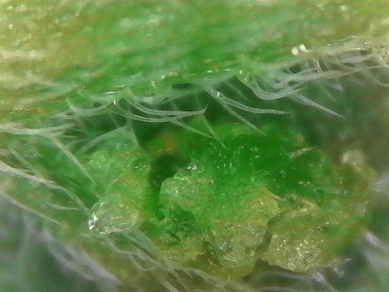 So I've been having problems with the current batch. Most of Strain #1 have curled new leaves, seems like either Nitrogen toxicity or overwatering, I've adjusted down on both of those, but it's too early to say for sure yet. Strain #2 is not having any curling problems, but I notice some spots of the underside of the leaves today. I had mites in the past, so I feared the worst, but putting them under the microscope reveals something I've never seen before. It almost looks like some sort of cancerous growths to me.