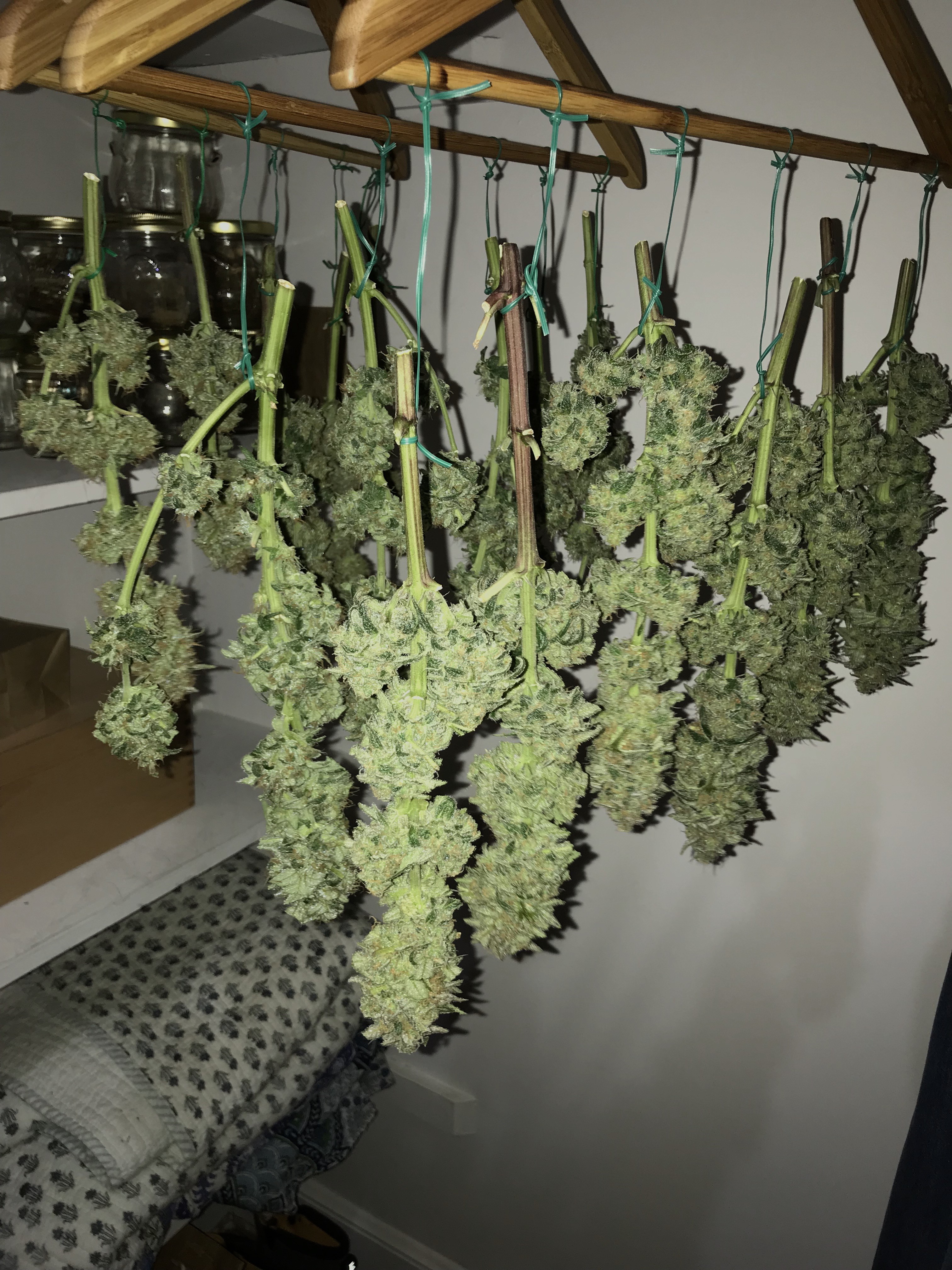 Nuke: I agree with Toker: the price seems mighty inflated for what you get. All you need is a clean, cool dark-ish place with good air circulation. I strung up a rope in my bedroom for my soon to be harvest--coolest room in the house, and I can keep it nice and dark. I have been drying bud in my closet, with the ceiling fan on in the room. This has also worked well. The key is dark, cool, right humidity.