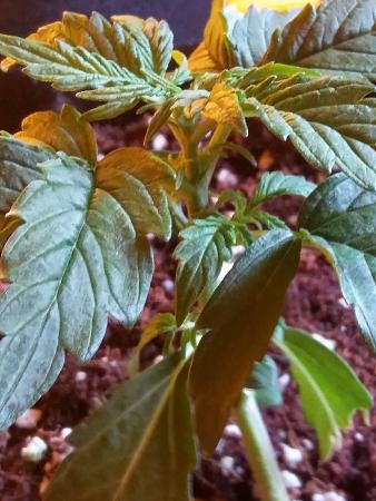 Doh, the curled leaves was light stress. Checked and the tops were 12 in from light. Click image for larger version