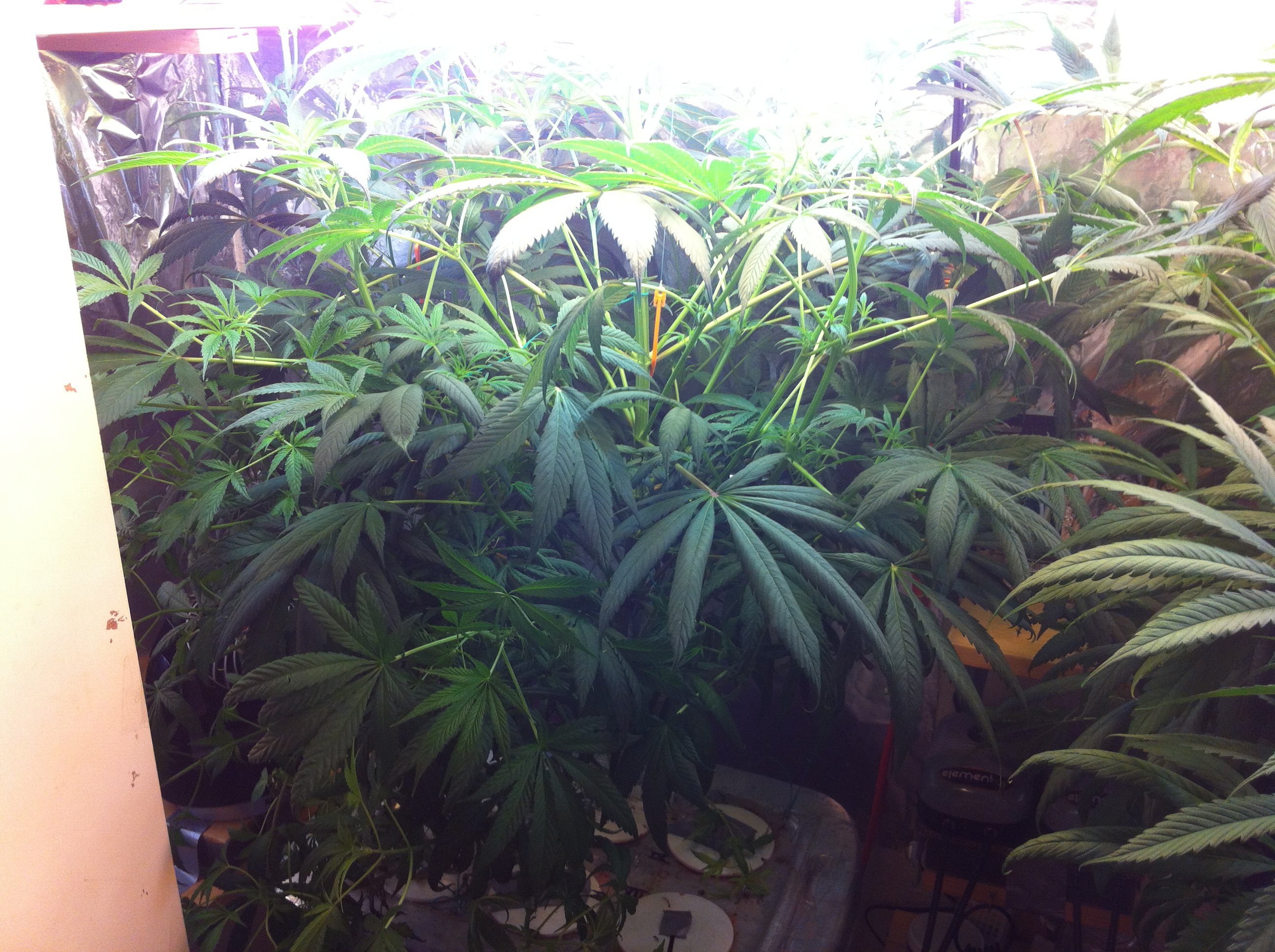 Removed two plants yesterday. They were showing strong male signs. Under magnification they looked like a cluster of pecans in a tree! This grow beat the odds, six ladies out of eight sprouts. The worst thing that bothered me about removing the boys, was that one of them was the most aromatic of the bunch. Here is a photo after, looks a little bare.