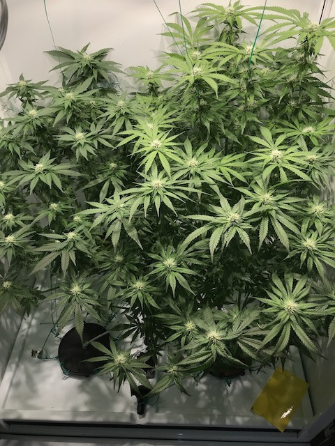 Last week of nutes for this box; stigmas turning brown, the flowers smell divine. Not quite as frosty as the last grow; most colas shorter than last grow. I flipped to 12/12 a little too soon... Damn!!!