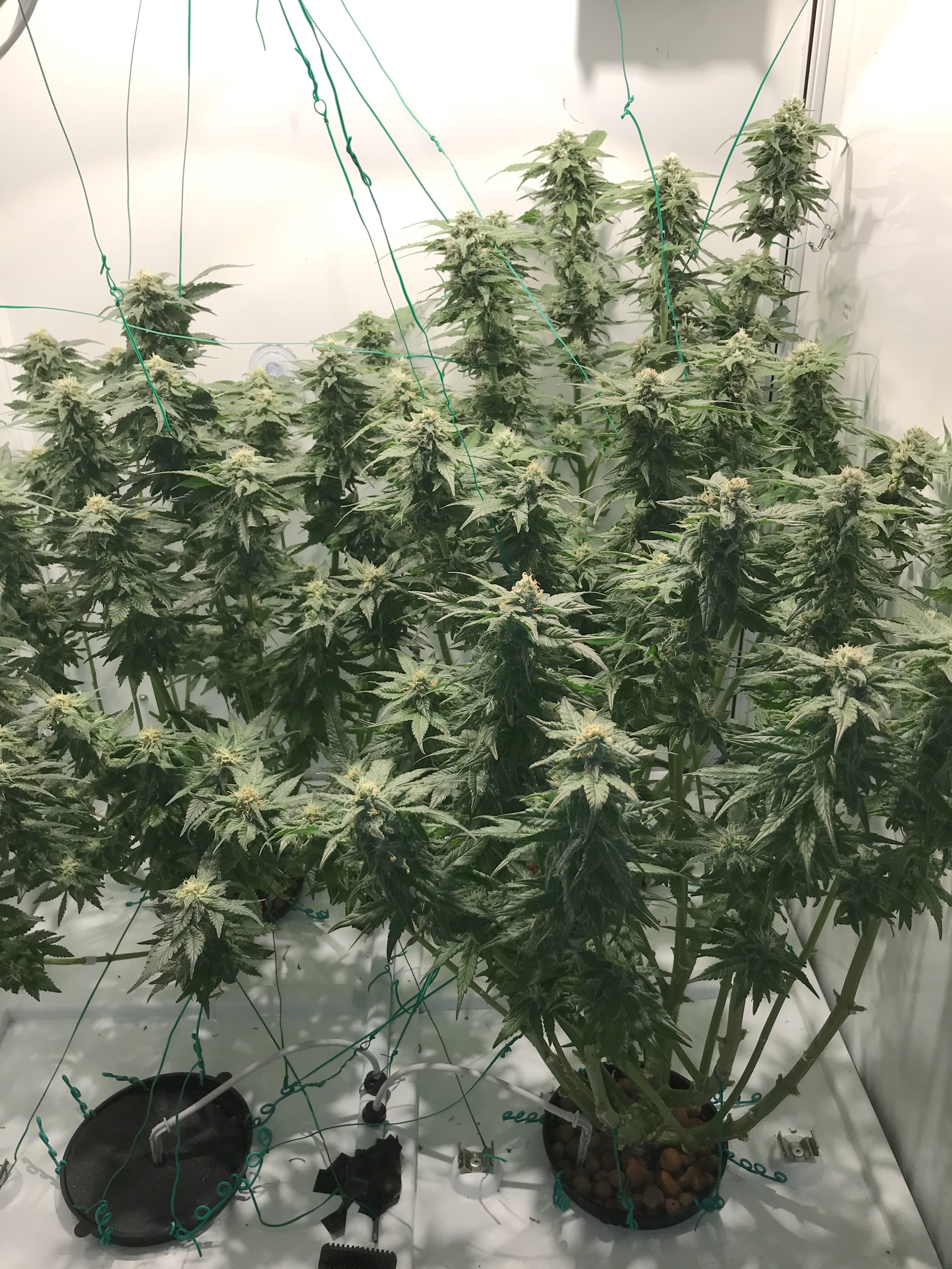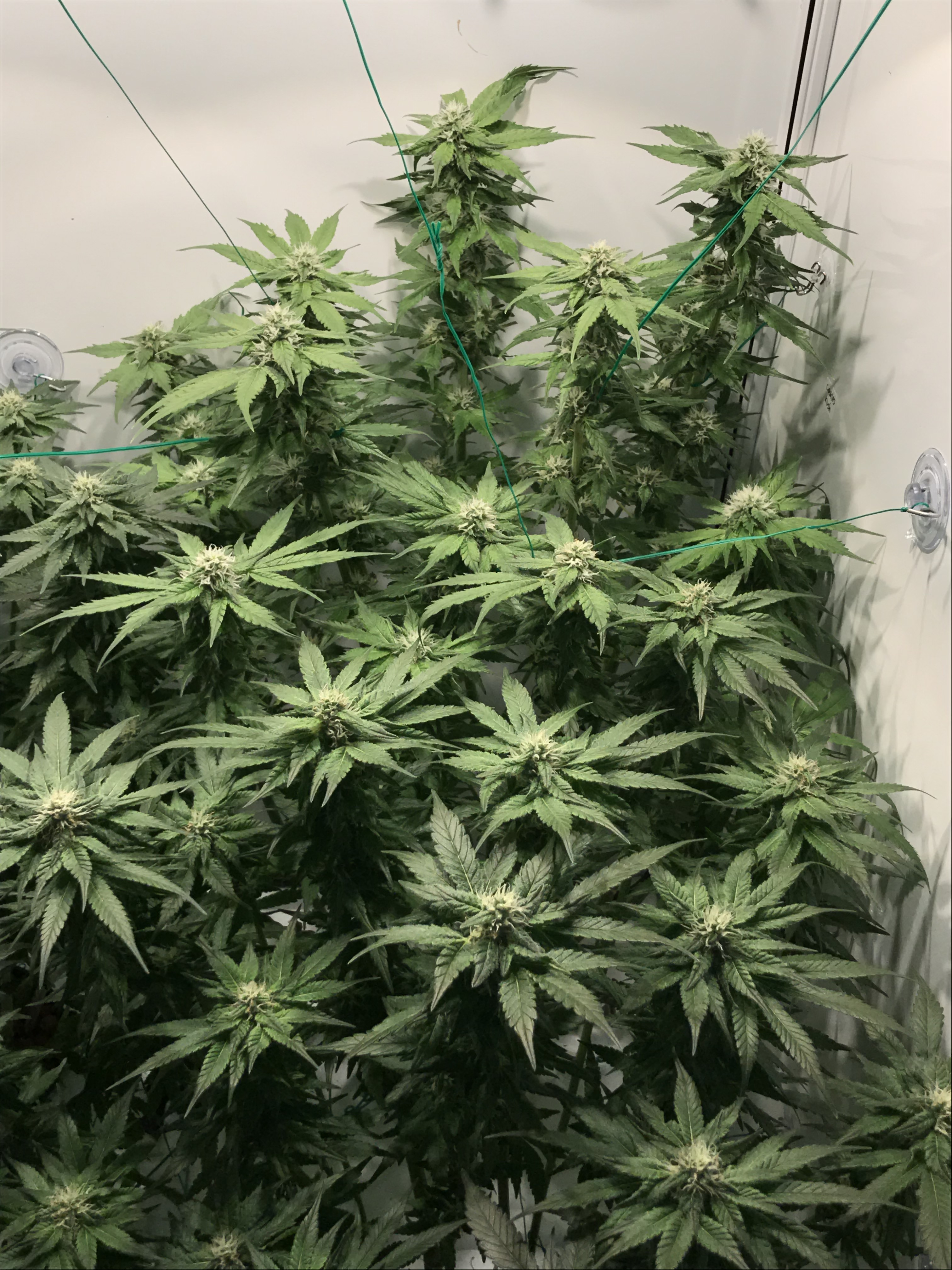 homegrown I actually did most of the cola training after the flower stretch was over: that's when I can get them all into their own spaces. I don't like to do a lot of tying down during vegetation because my plants end up too short--OR I need to veg longer, OR I need to grow just one strain in a box. But I just can't get myself NOT to grow different strains together.