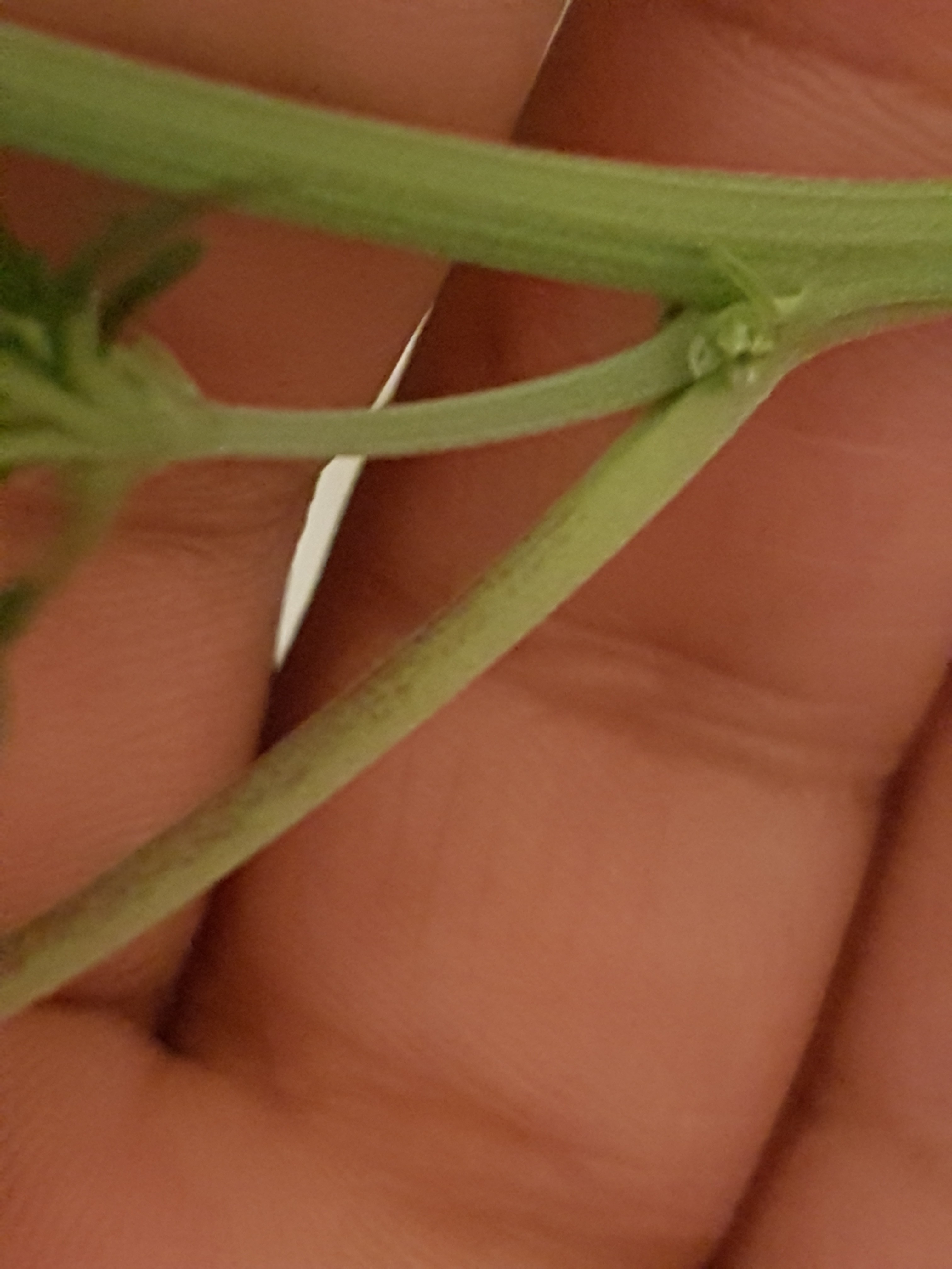 I bought autos i think it was too hot as some buds had seeds I collected about 10. I germinated this one she was looking female up until last week. I have been struggling with the heat, temp is running about 30 degrees Celsius. These small male balls have appeared some branches still resemble female. It has white hair and the male pollen sacks. I have took it away from the others today. If I continue to grow it in another room and putting it outside by day (as it's a auto) will the pollen travel into the next room a pollinate my female plants or possibly stick to my clothes etc seems a shame to throw it. I am hoping taking it away from the heat might bring out more of the female trait of the plant. Only time will tell.