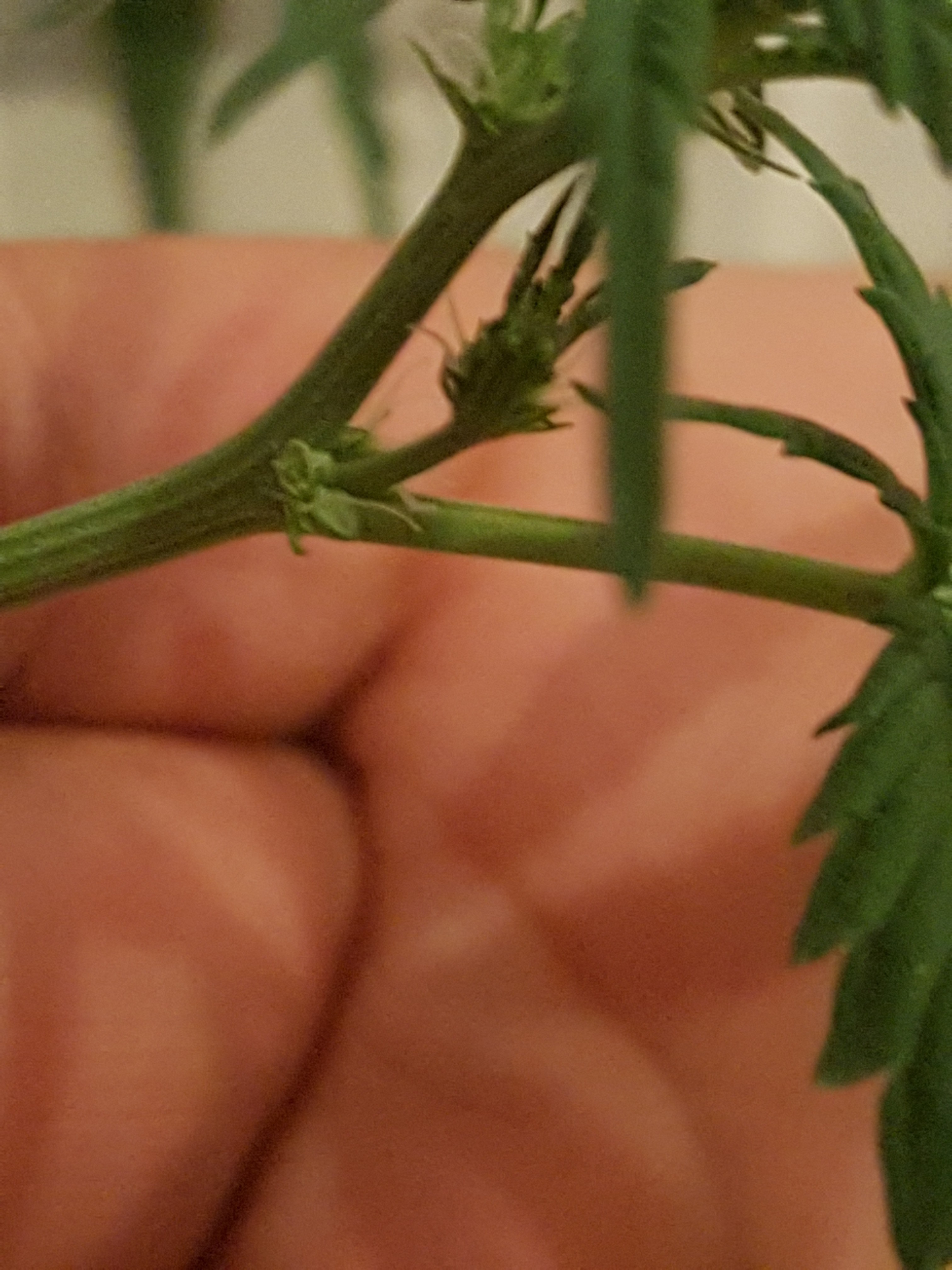 I bought feminised auto seeds grew them and going a handful of seeds. I germinated one I thought it would be female. I grew it Its stating to preflower about 6 weeks old. I am now noticing balls where the hairs were. Some hairs are still there it's like it's male and female I have a few pics not very clear but I think I have a male plant what you guys think? Click image for larger version