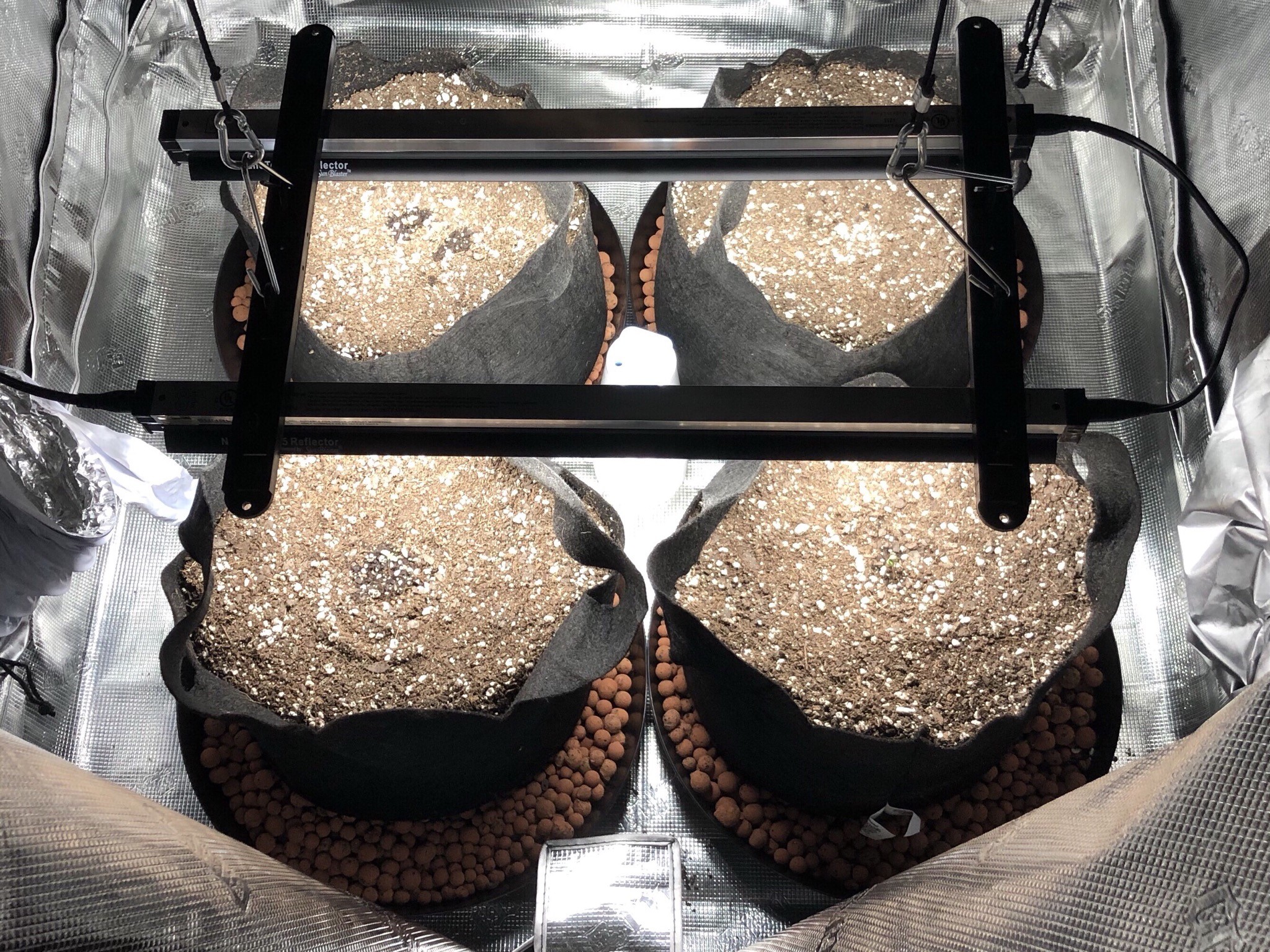 Hi s62 real nice startup. What's the distance on those t5? I use them and a cfl get them within few inches of the top. Keep them close so they don't stretch to much at first. I use LED at about wk 4 under the big lights just blue/white (veg) light. Looks like your growing autos. I'd hit those after 3wks with your big light those grow quick at first. Watch the height of light what the manufacture says about distance. Don't worry others will chime in soon I know they have the same light those 315 LEC real popular. I don't have that light. You can do it