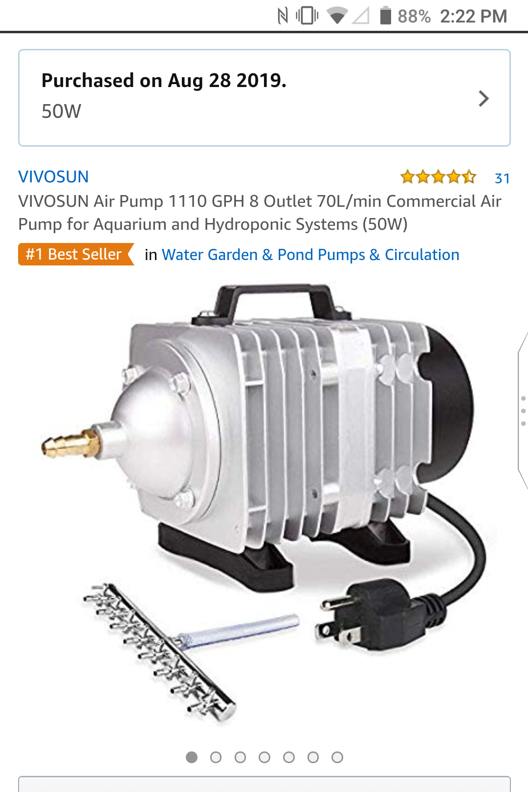 1,110 GPH air pump (50watts)