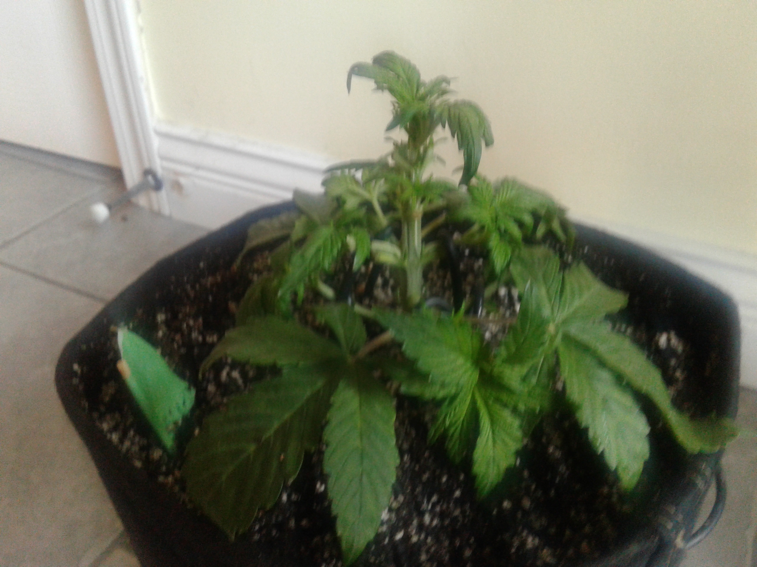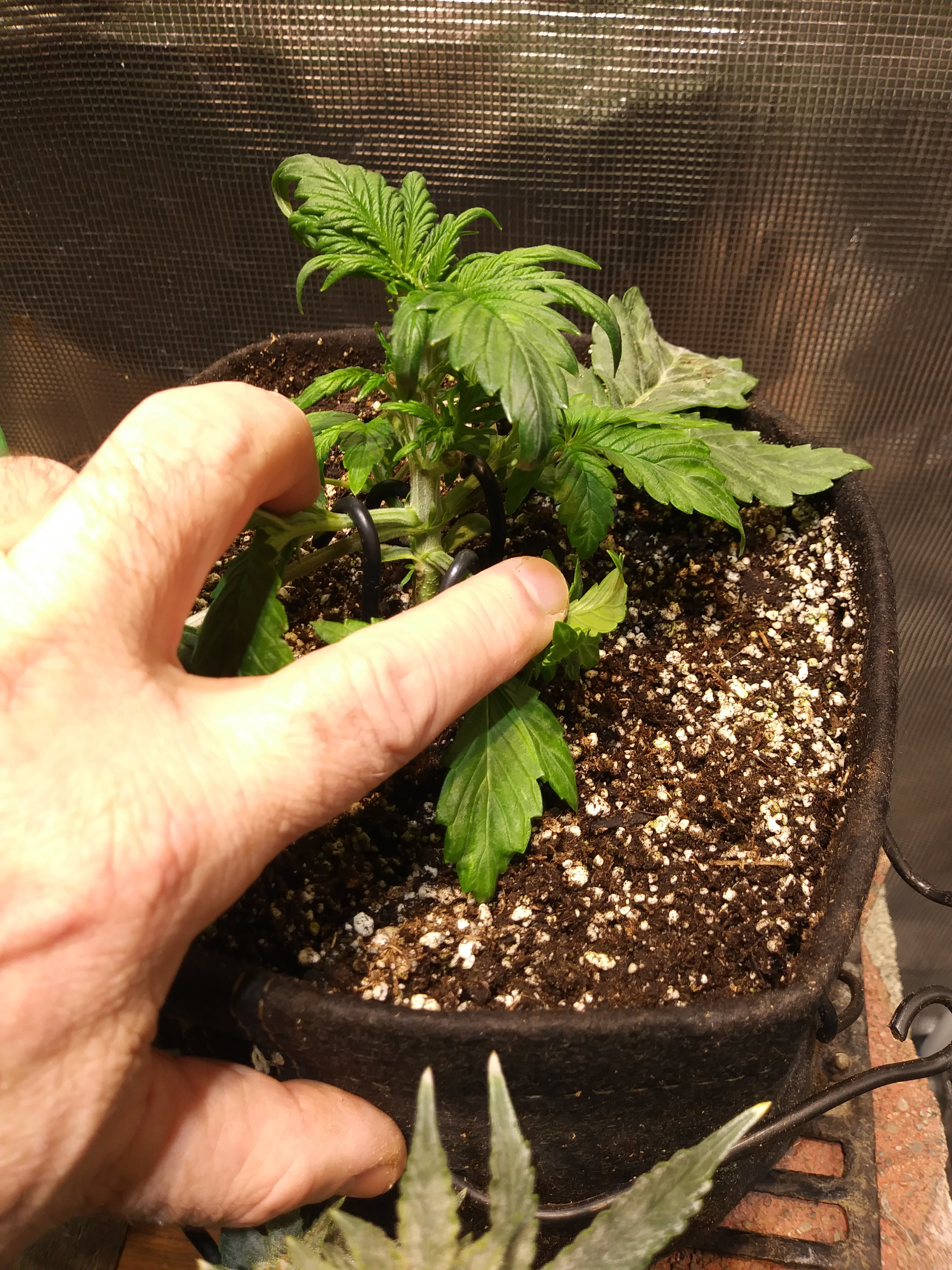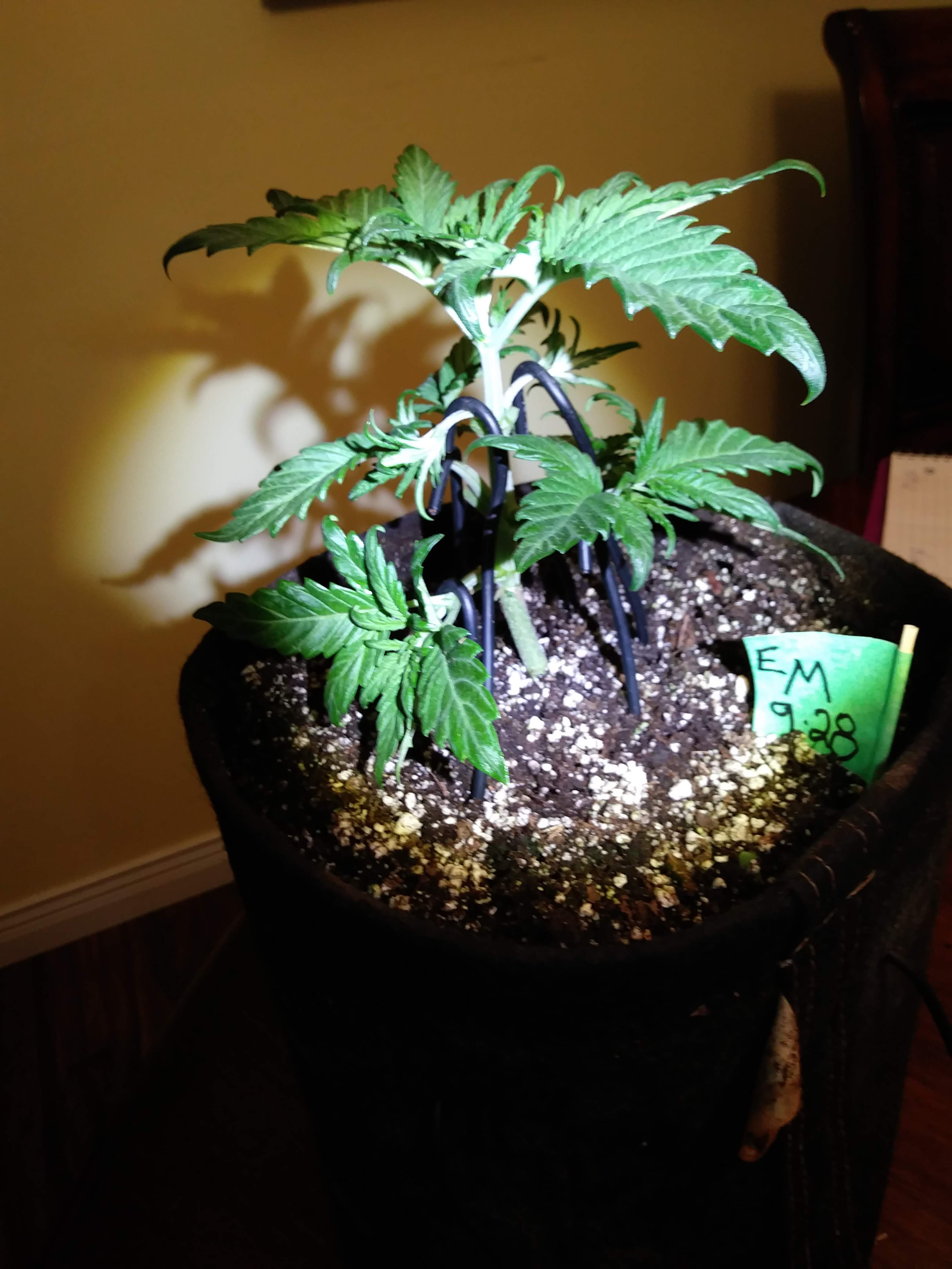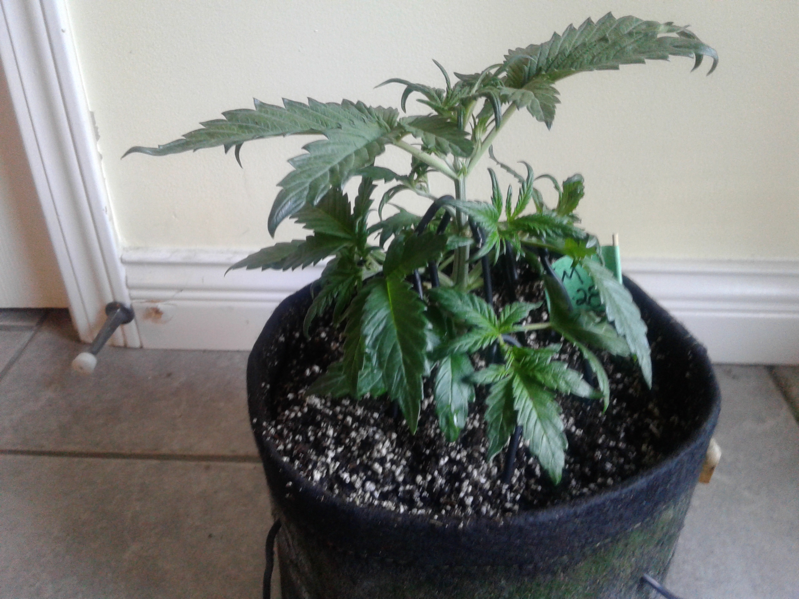 EM - she's at 13 mm - working on node 4 - will be topped at the sixth. Now her branches are growing good and strong - I'll bring out the 12 gauge tomorrow - electrical wire - and start encouraging the first two nodal branches to grow away from the center. She might lose some greenery as well.
