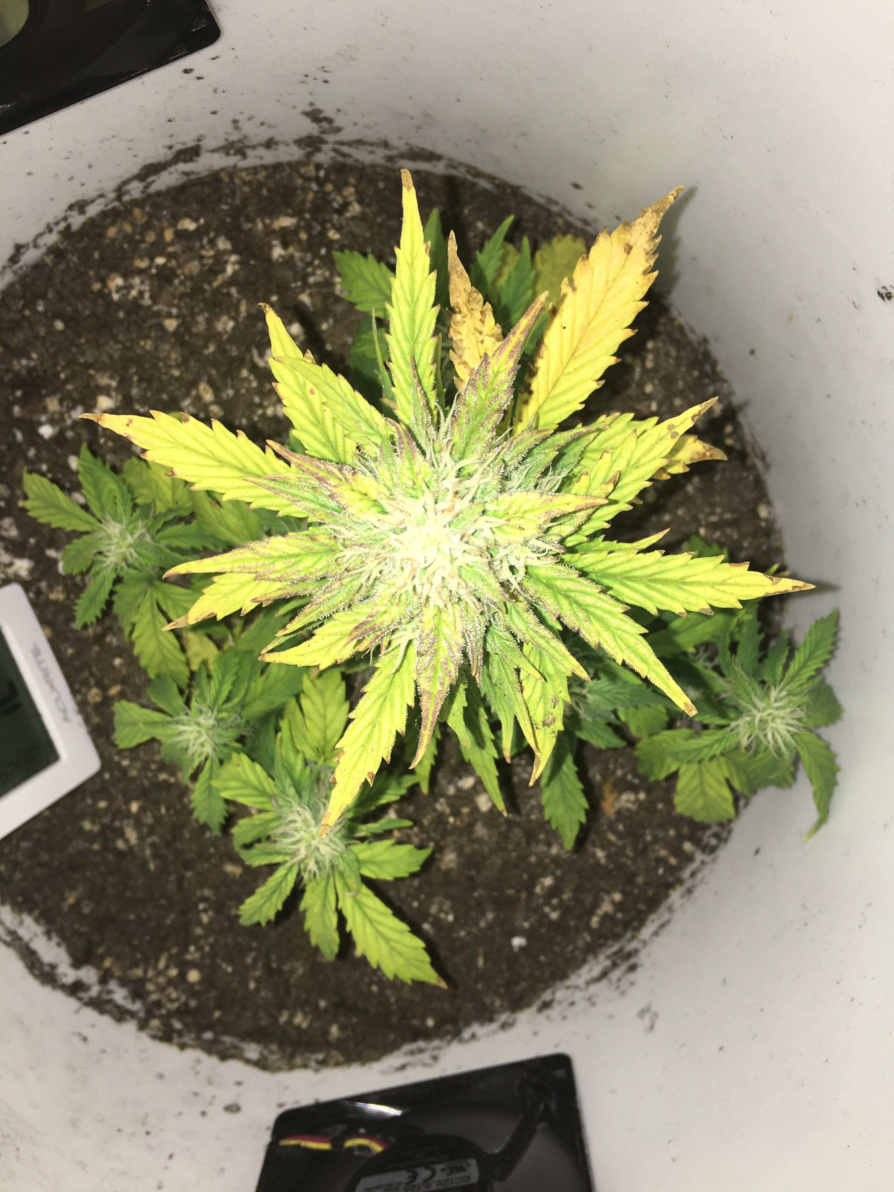 Blue mystic autofem from Nirvana, germinated under a CFL in plain potting soil & perlite recently transferred to space bucket with FF OF soil w/ added perlite, no additional nutrients, 6.0 pH on all watering. Run off water was in the mid 6s on pH scale. Roledro LED Grow Lights, 300W UFO LED Grow Light for Indoor Plants, Red Blue Spectrum Grow Lamp for Hydroponics, Veg and Flower for lighting.