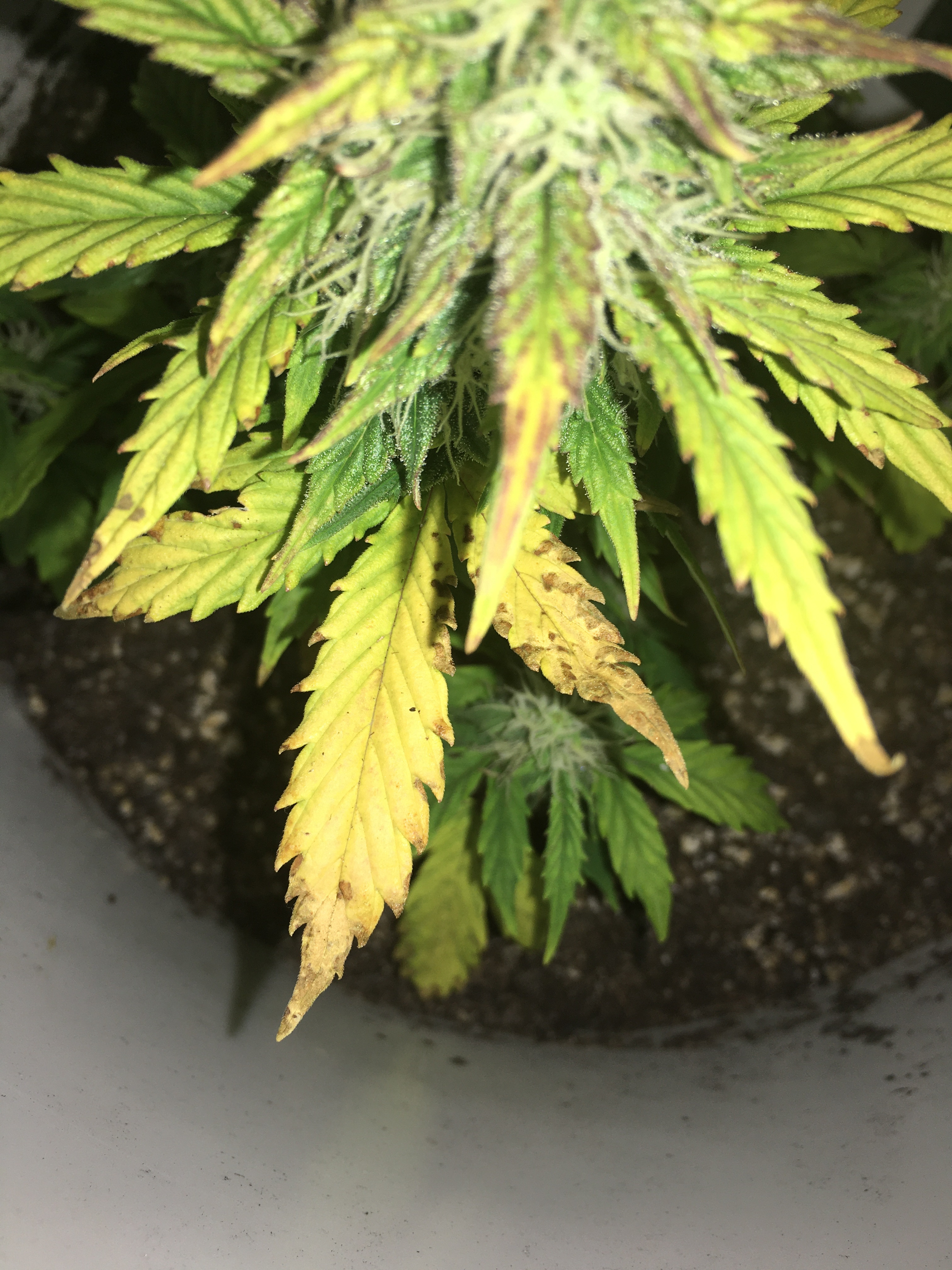 Is it already experiencing nutrient burn? I transferred it because the older leaves were already turning yellow and the roots were growing out the bottom of the cardboard nursery pot. I tore the sides of the nursery pot away before transferring.