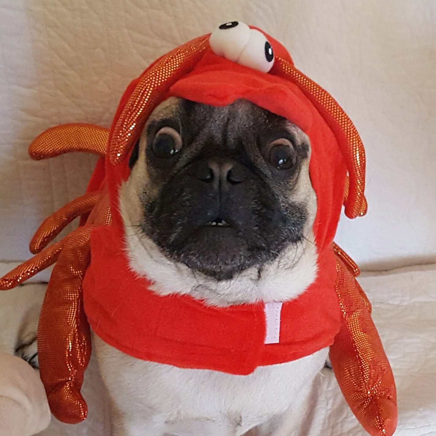 Did he decide to not be a lobster for halloween then? Sure looks shocked at what you told him! lol!