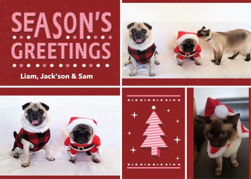 I didn't send holiday cards last year but received many so I got ahead of the game this year. Created late last night, picked up at Staples today. I share this because I know how much Mr Gingerbeard likes decorated pets.