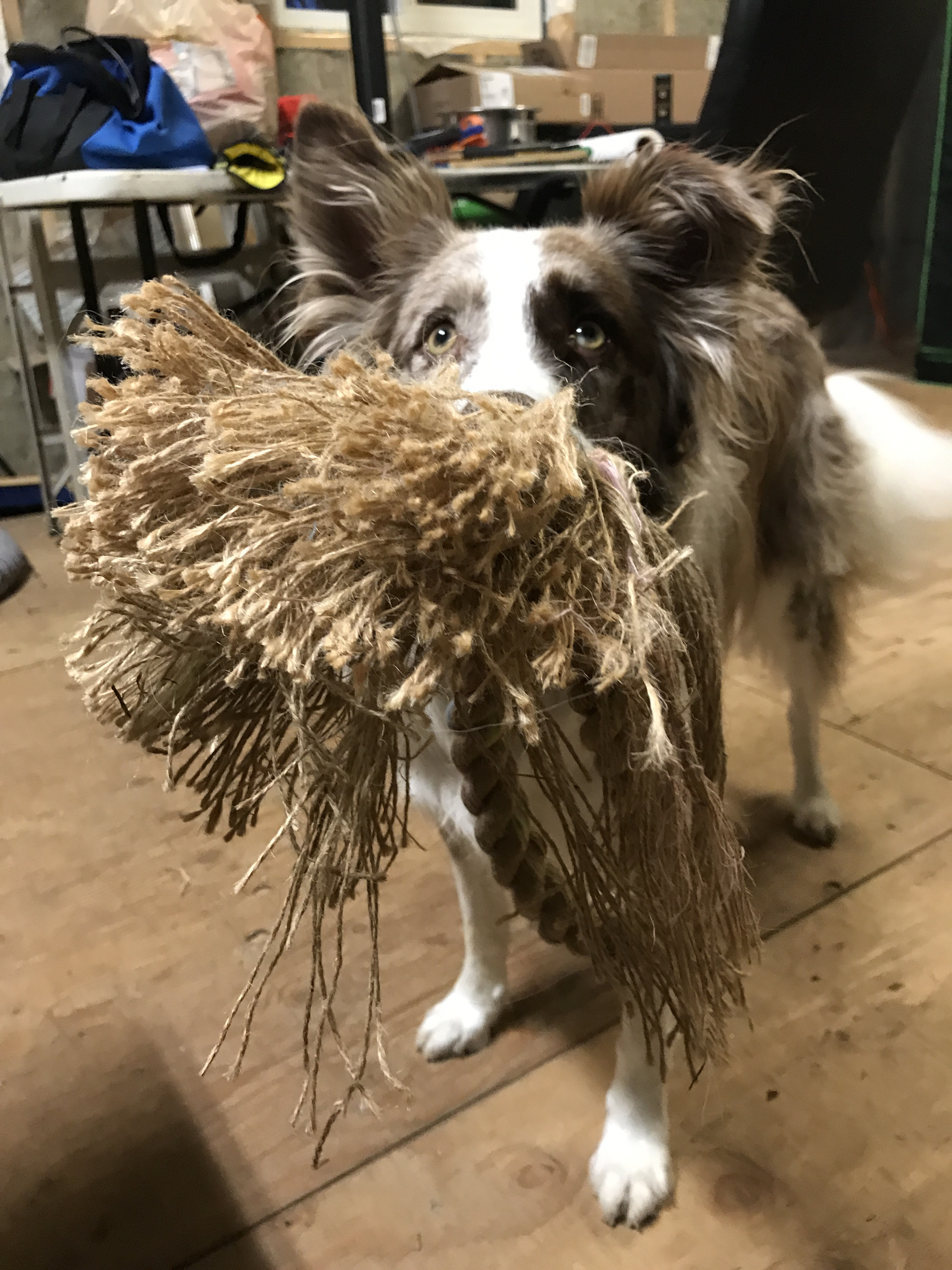 Cork the 85 lb puppy likes to sniff the grow to make sure it is good. And leave hairs behind.