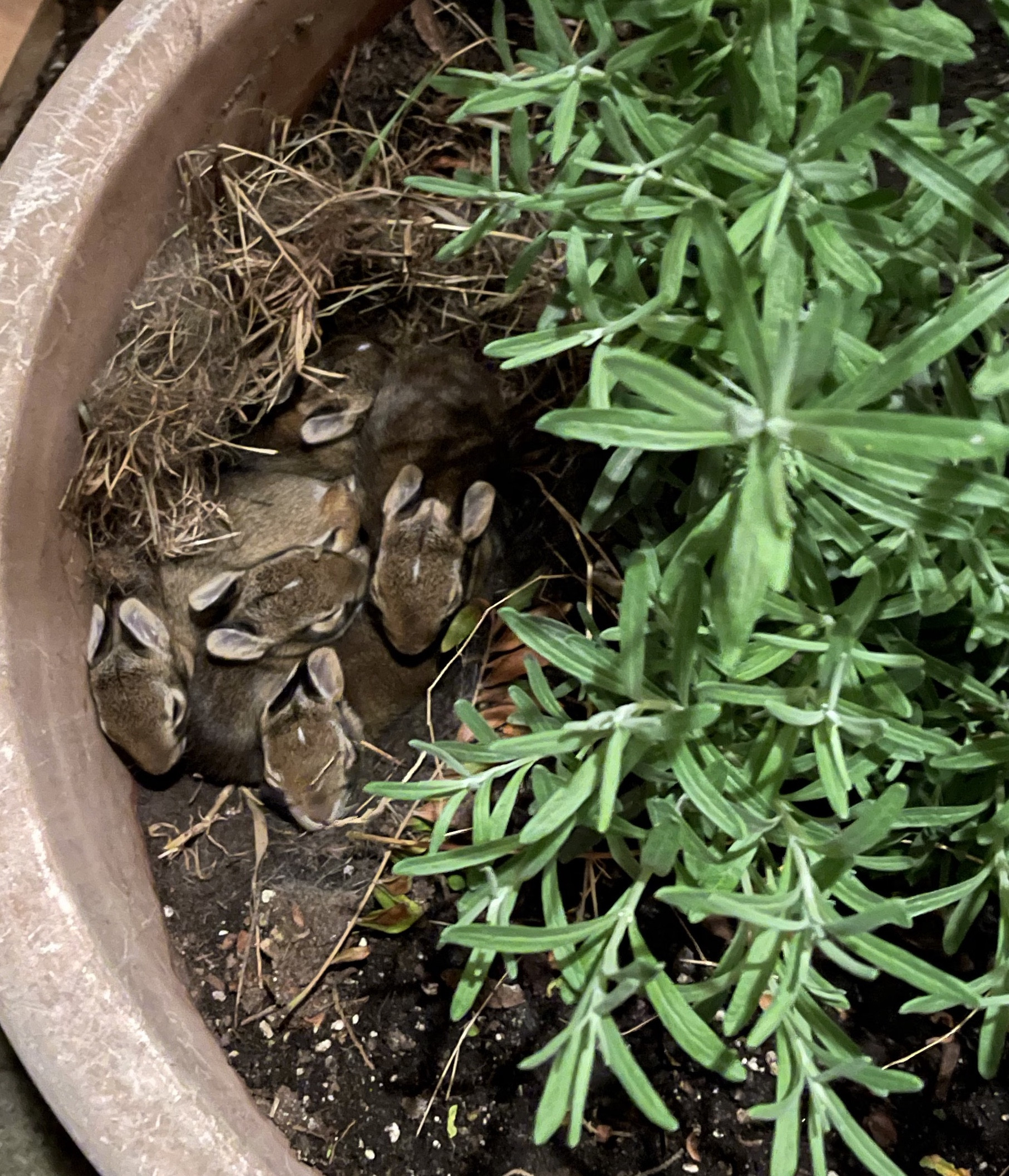 Not sure that I would call him a helper but this guy keeps my legs warm at night and only complains when he doesn’t get walked 60 or 80 times a day. Below that are my other helpers this summer, the bunnies from the newsletter last week that I found in the plant pot just outside my back door.