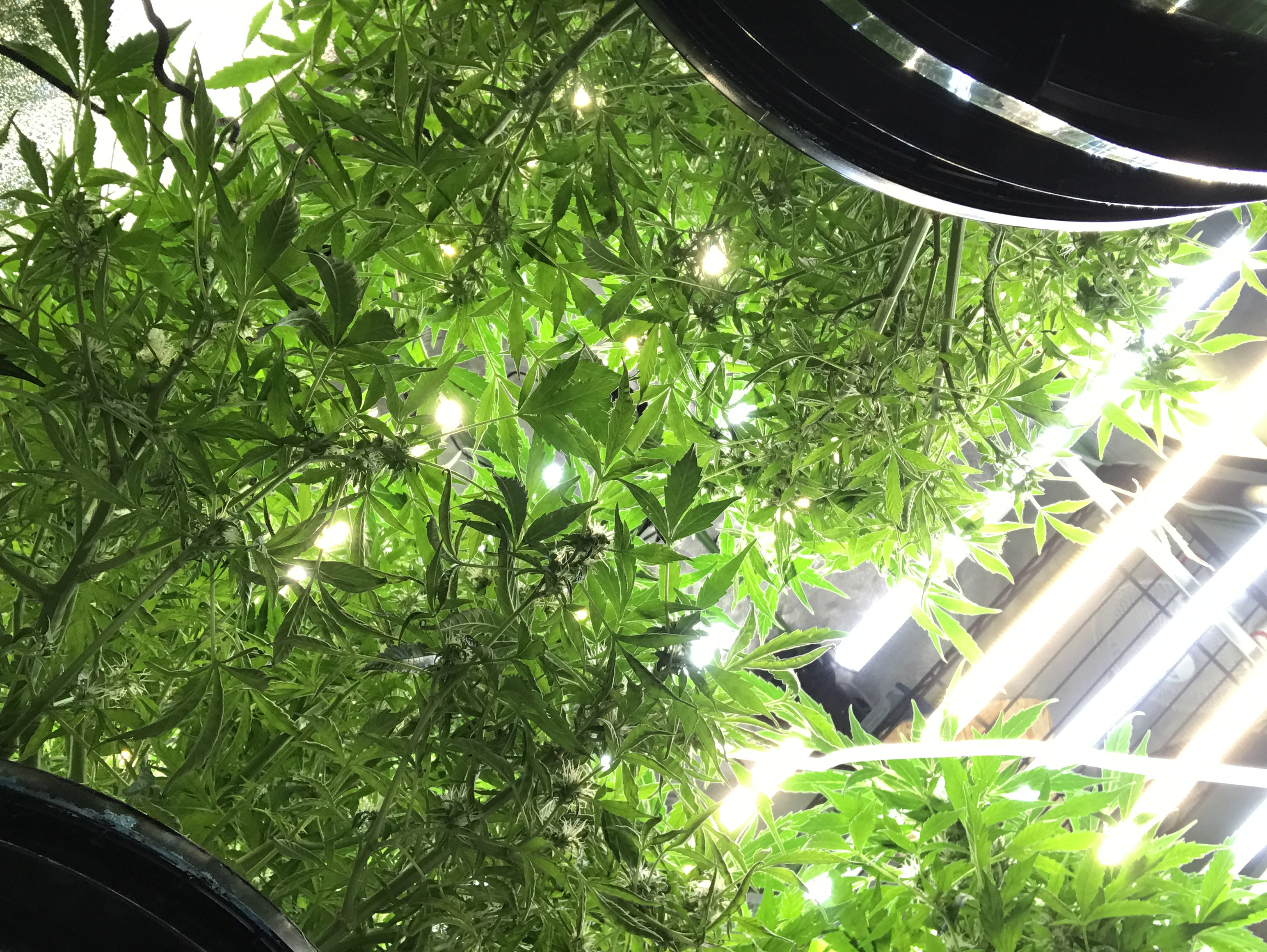 Here’s a few upskirt shots to show the light coming down through the plants. I did a moderate defoliation last week because the girls were very dense. Humidity was becoming an issue.