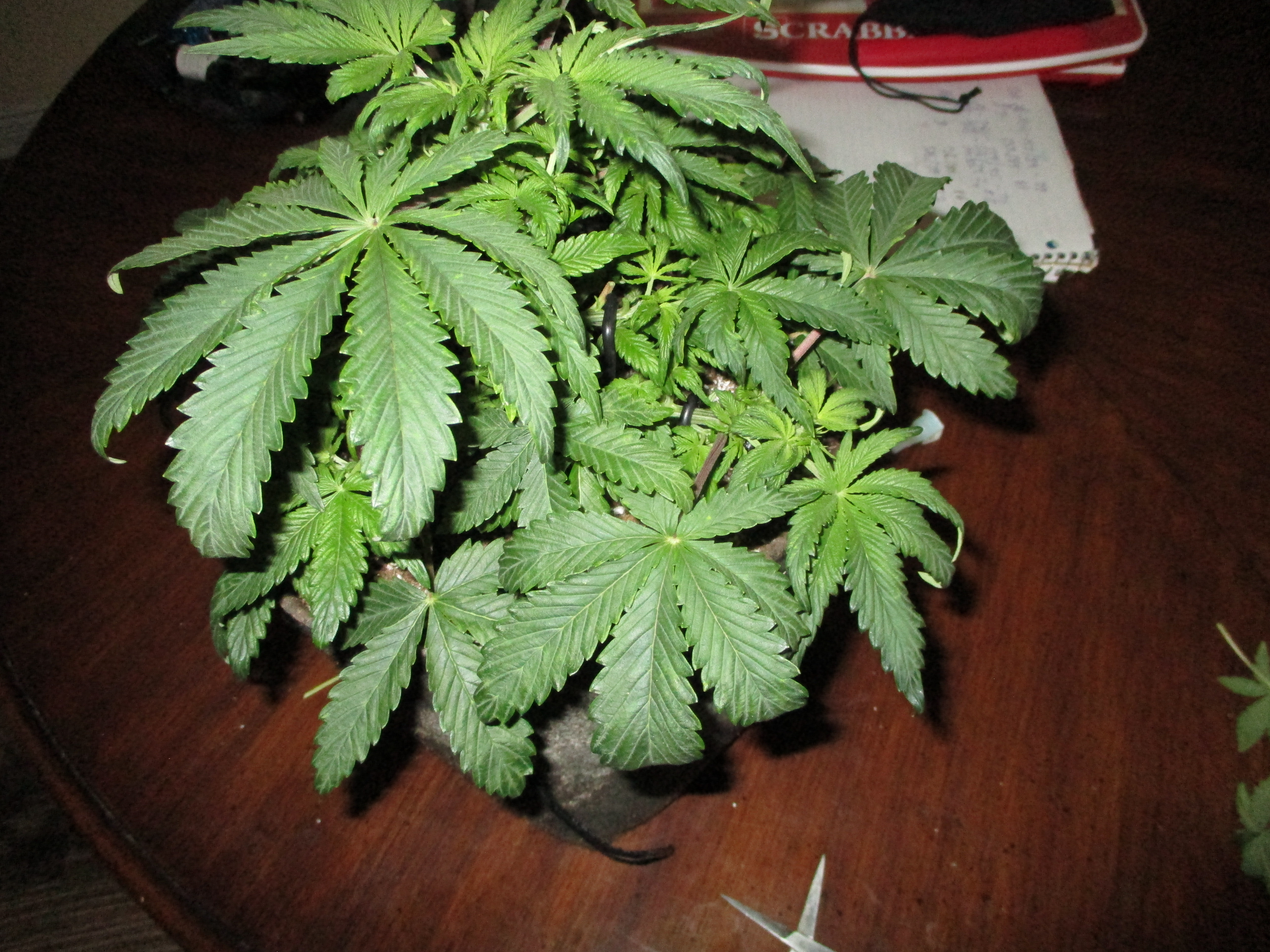 So my bruce banner plants #3 are about 3 weeks into flowering, 4 since 12/12 flip. They are pretty leafy so i decided to get rid of some of the bigger leaves. While cutting a couple i noticed they had a set of leaves kinda on top of the leaf by the stem. Counted the leaves and noticed i had 11 fingers! It wasnt just a leaf here and there...id say most of the leaves towards the top are 11 fingered! It's also got A LOT of sugar leaves. Ive had a few 9 finger plants but never an 11 finger. I hear this is a sign of a healthy plant, that true? I could have veged her out longer but she's not lookin bad. She has at least another month to go, i know, but i thought that was cool!