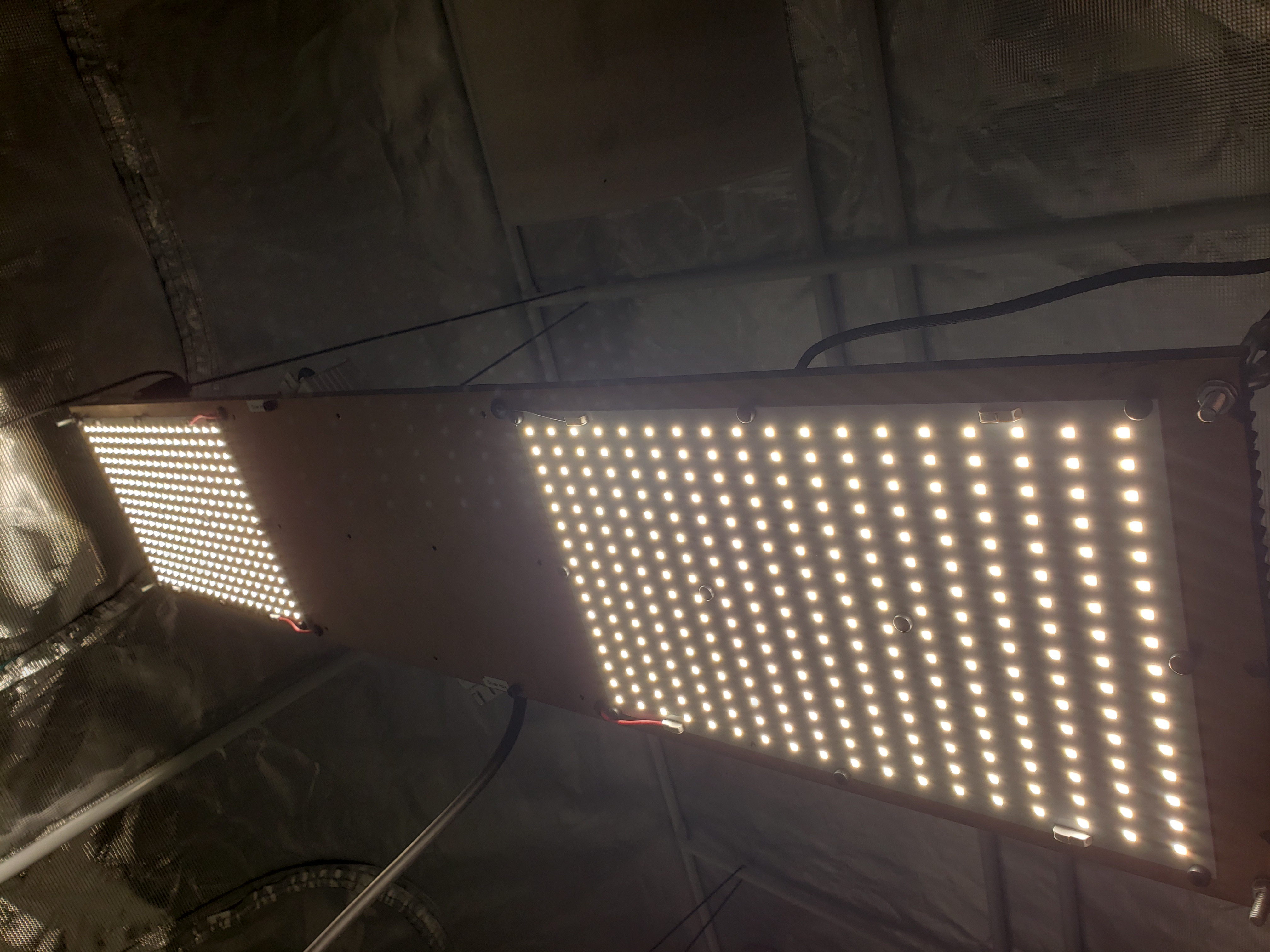 It's the Qb288 V2 LM301B model with HLG 240H C2100A meanwell drivers. Based on a recommendation from a more experienced grower, I went with a triple heat sink because they said it would give more even spread if there's a gap between on triple vs side by side if you use a double heat sink.
