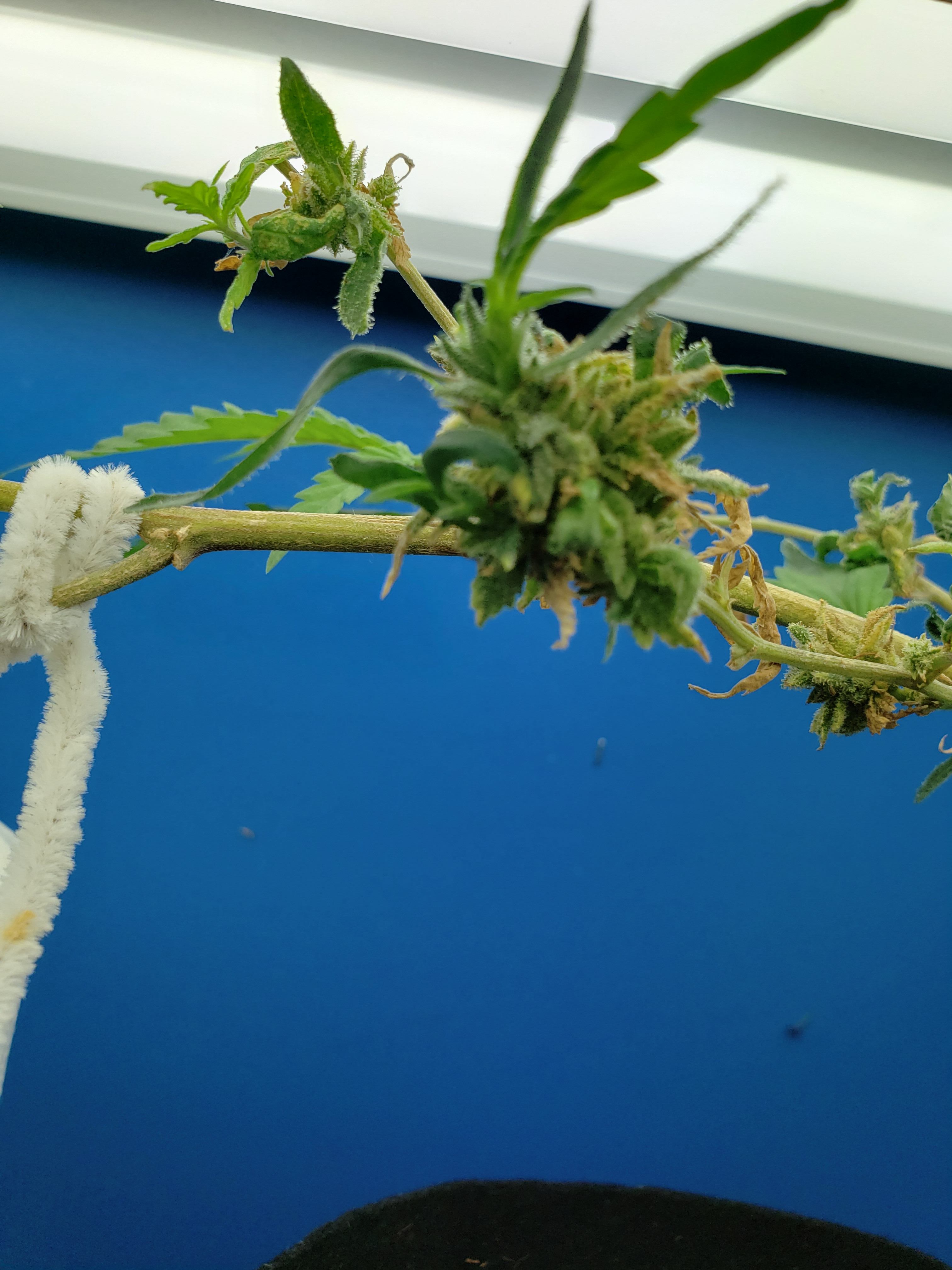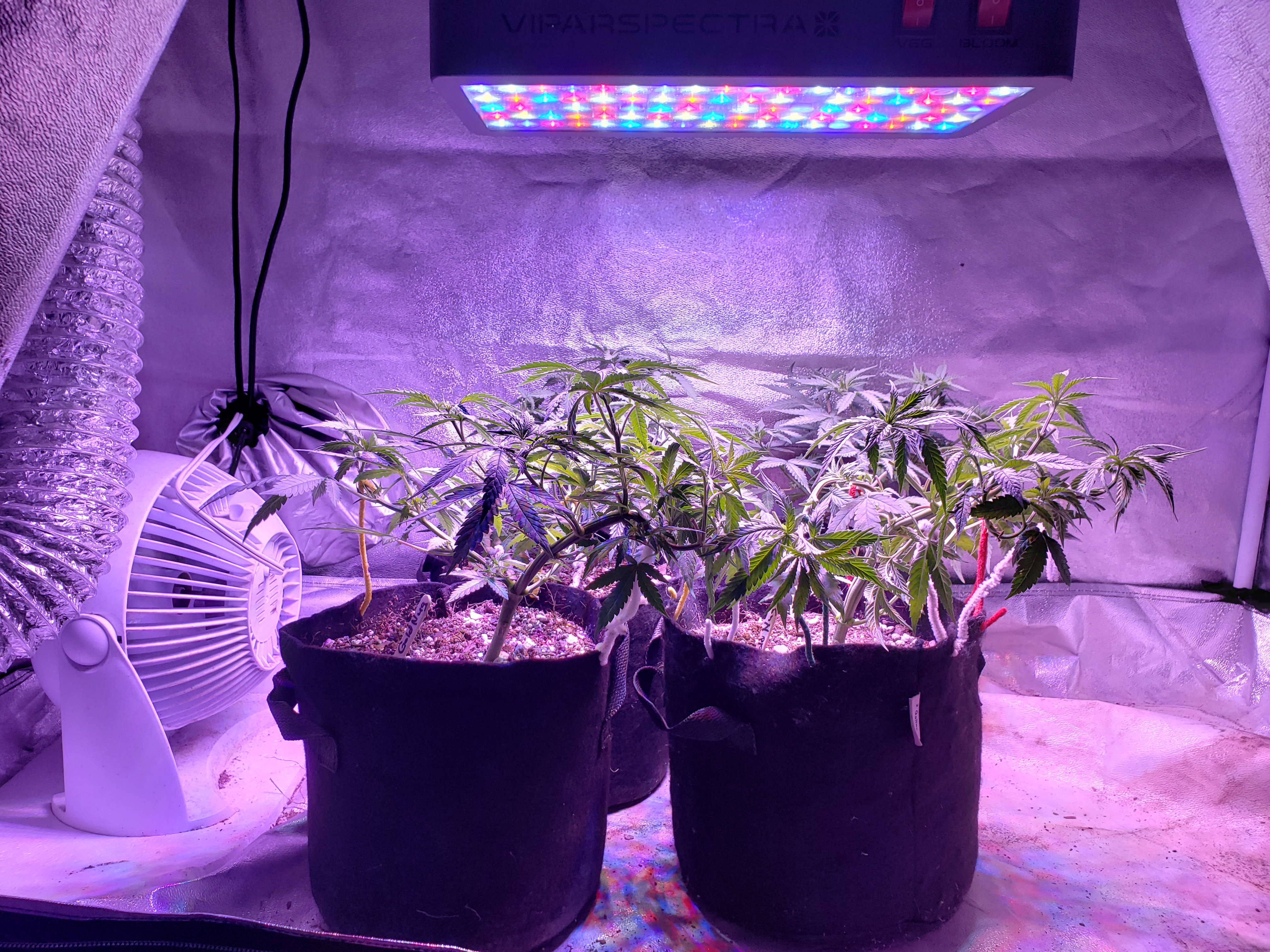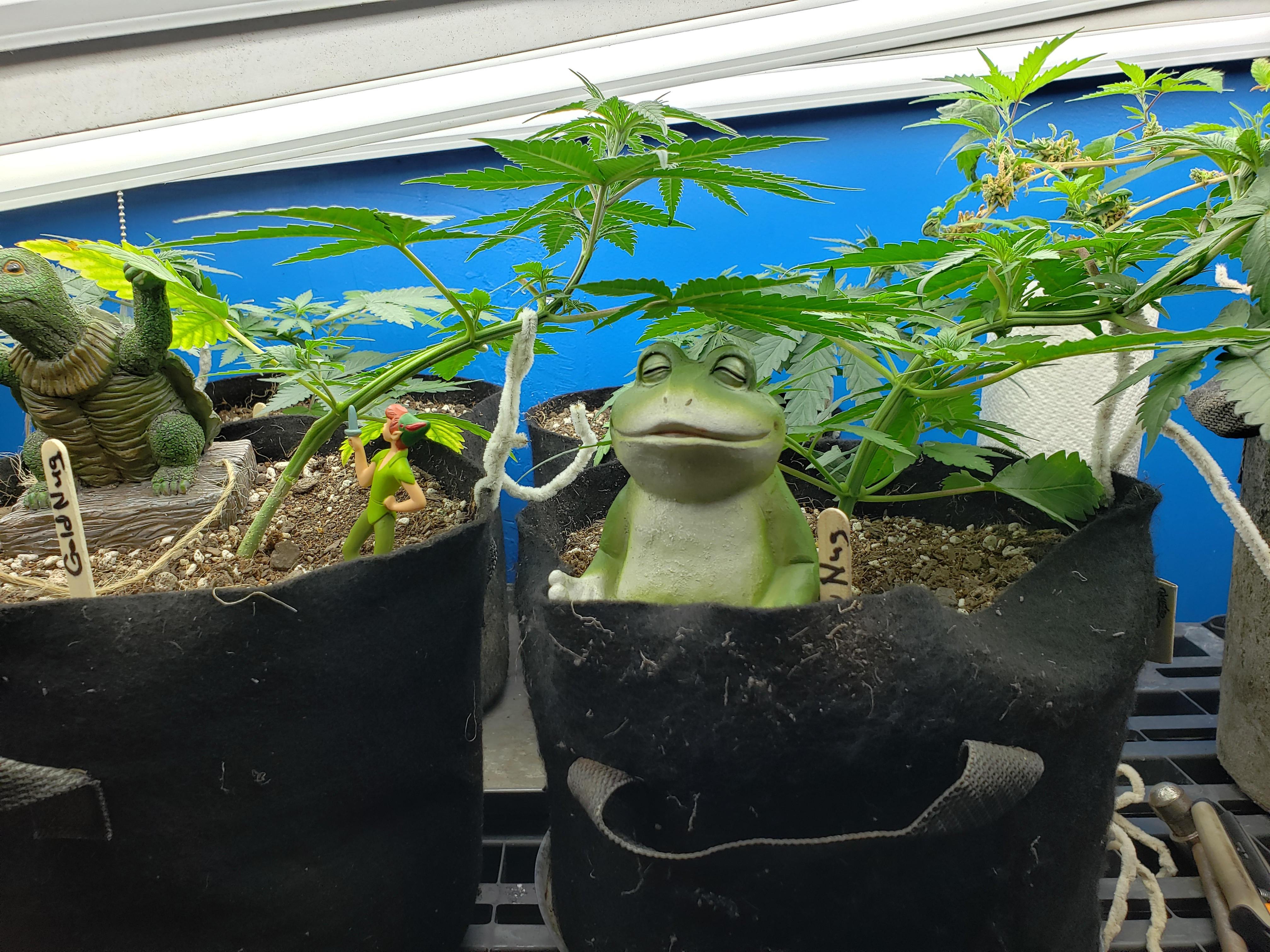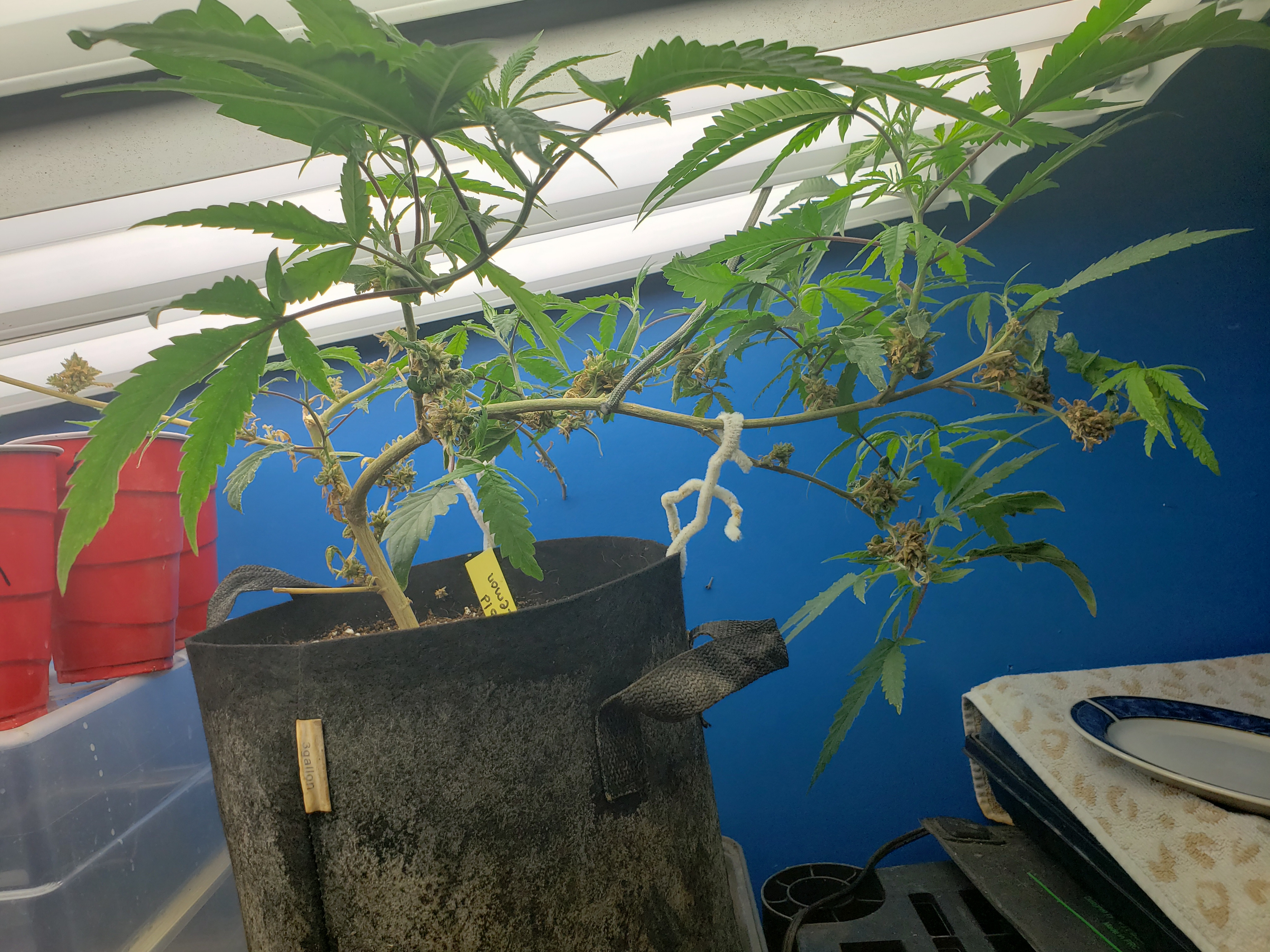 With my son home for the first time in months and getting my fill of Grandkids, my garden has gone with way less attention than normal. Just in the last week a few spider mites have blossomed into hundreds, so wipe down with soapy cloth this coming week for all my plants, but especially this revegging female. This is an important plant for me to preserve so it will get alot of attention in the coming week. But look at the new growth! Mr.furley looks like I will have cloning material for the solo cup grow!