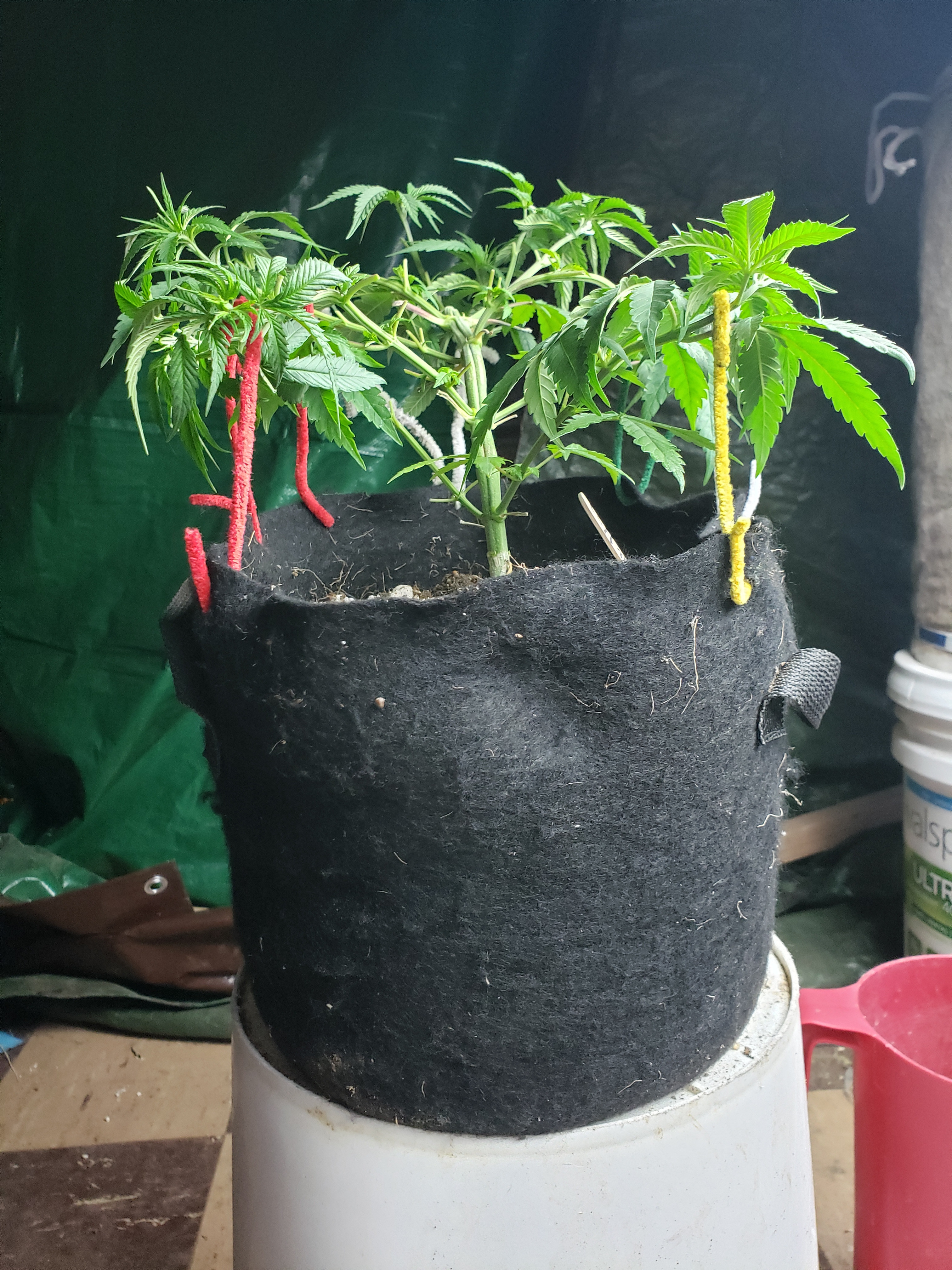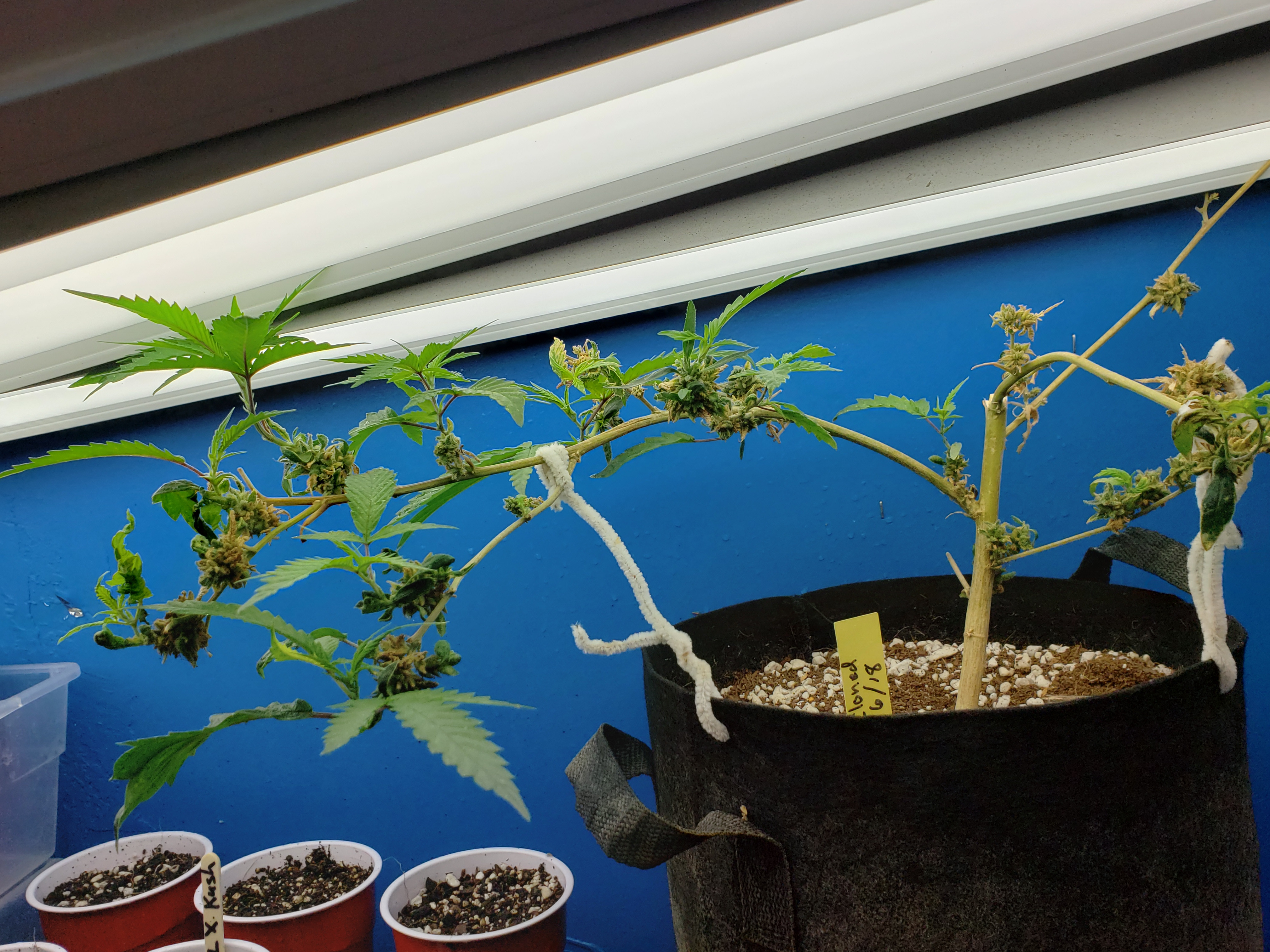 Last day of flourescent lights for this group. I accidentally snapped off some of the Golden lemon in revegg, but seems to not have any bad affects. The 4 gold nugget have trained nicely in an almost manifold grow. Tomorrow I will move these to LED, keep the revegging plant under t8s until I can clone her. I appreciate being able to share this and hope I am not oversharing here. But this is becoming a valuable tool for me to actually track my progress as a grower and wannabe breeder. Thanks!