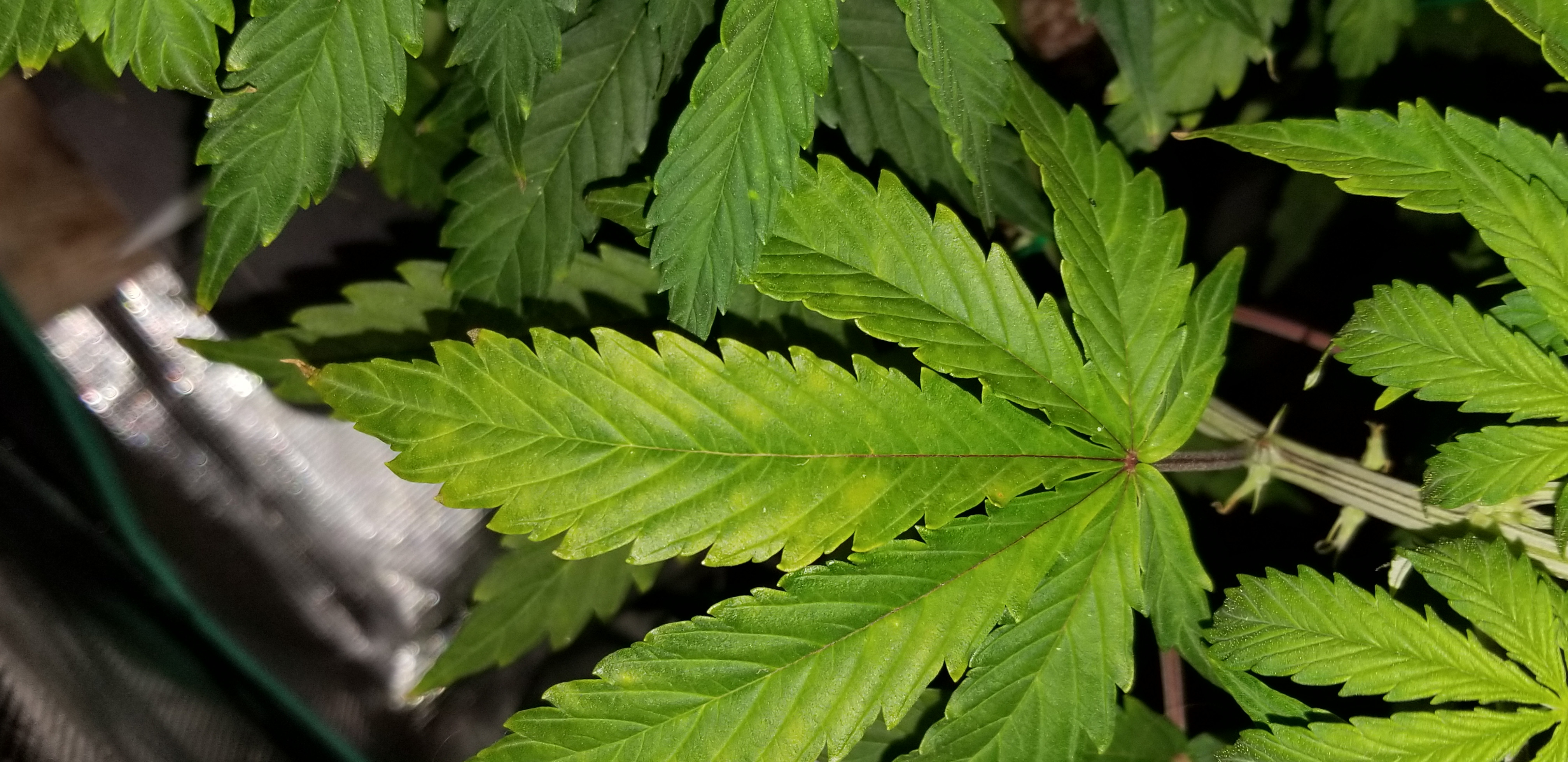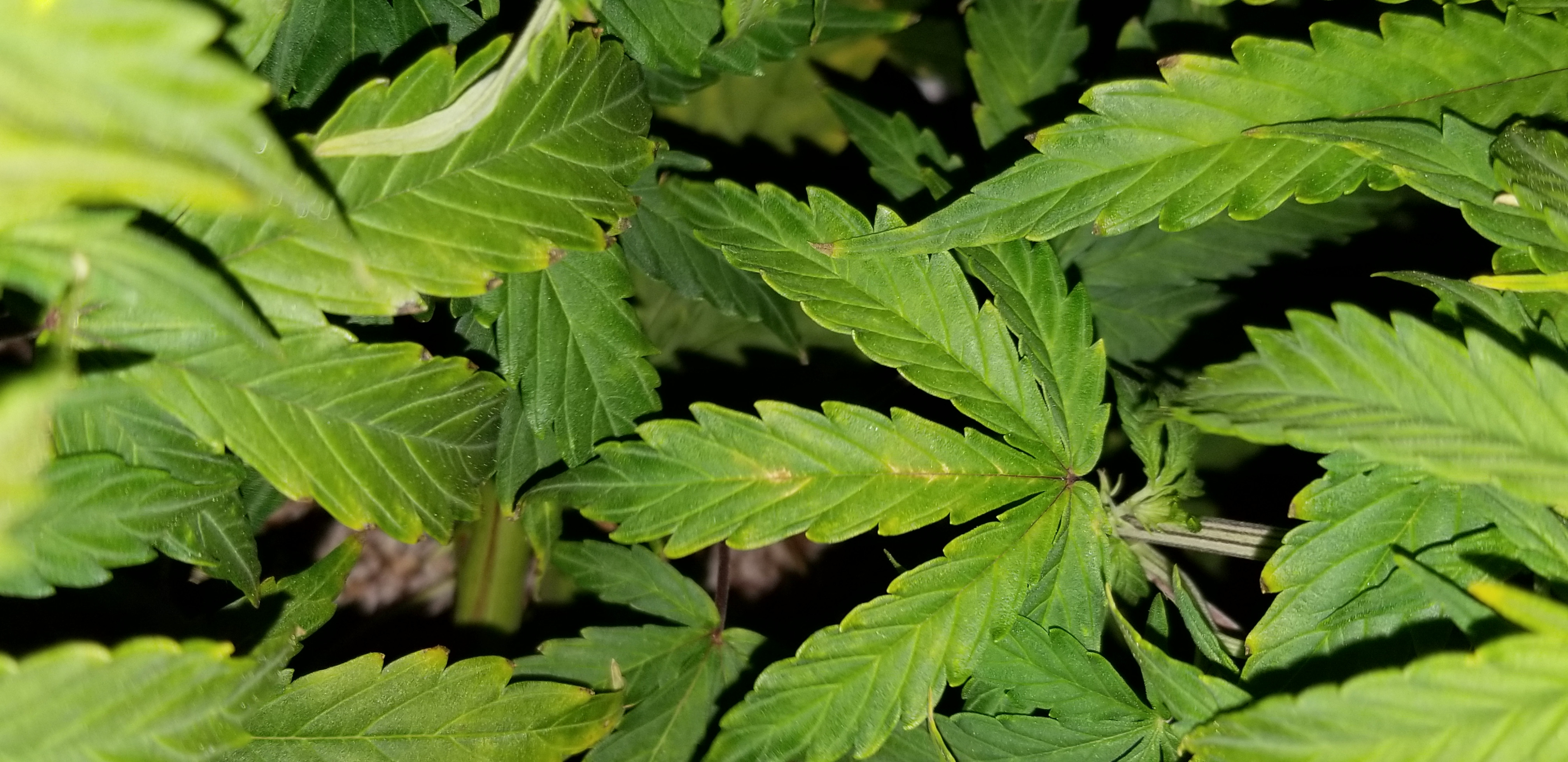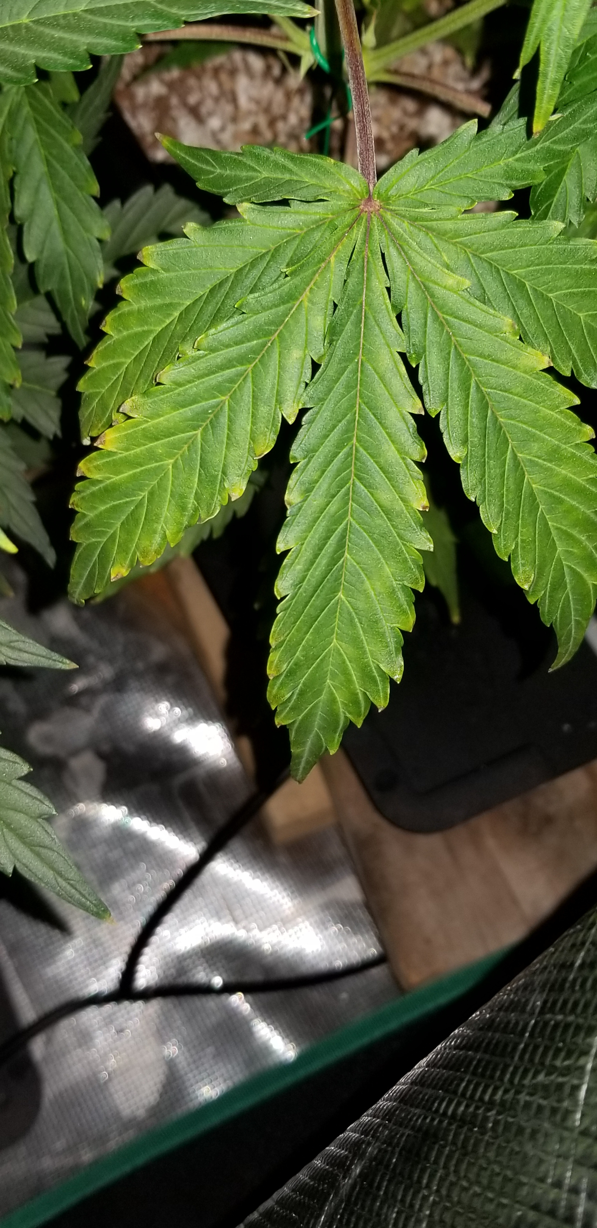 1st sign of anything other then a slight burn from nutes on some leaf tips throughout the grow.