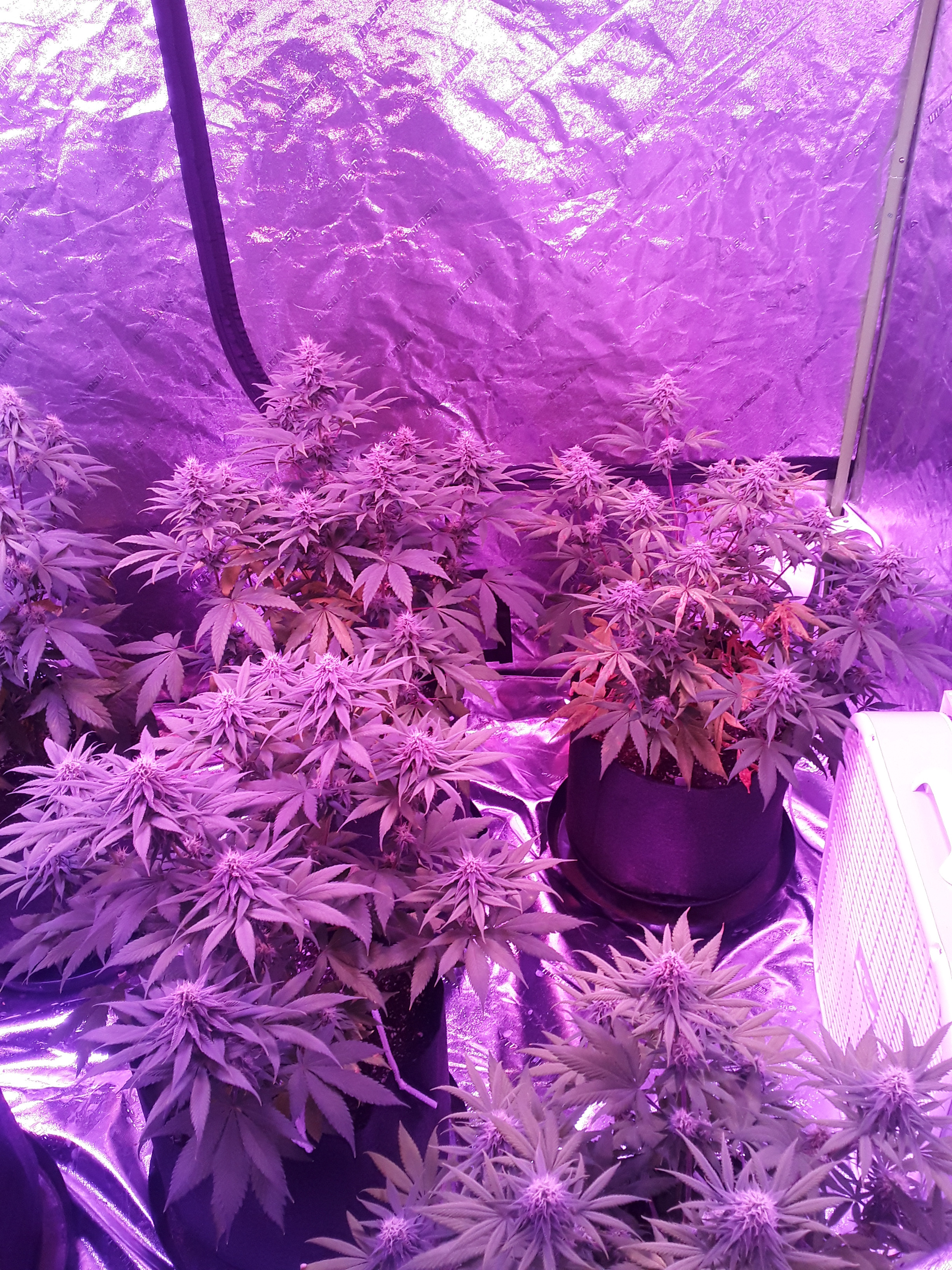 Day 37 of flower. Had a lot of leaves turning yellow sooner than expected and found I had a range of problems, I was feeding light because I am using FFOF soil and thought it would do most of the work but I was wrong, I bought a soil tester and found that I have like 0 nutes left in the soil. I am calcium and magnesium deficient and no nitrogen either. On top of all that the ph test pen I am using was out of calibration so the water that I thought was 6.7ph was actually closer to 5.9 so I have deficiencies and lockout. Have fixed problems now and hoping it didn't stunt my yield too badly. They still look awesome. Watered today with some tiger bloom and a little cal mag and tiny bit of blackstrap molasses.