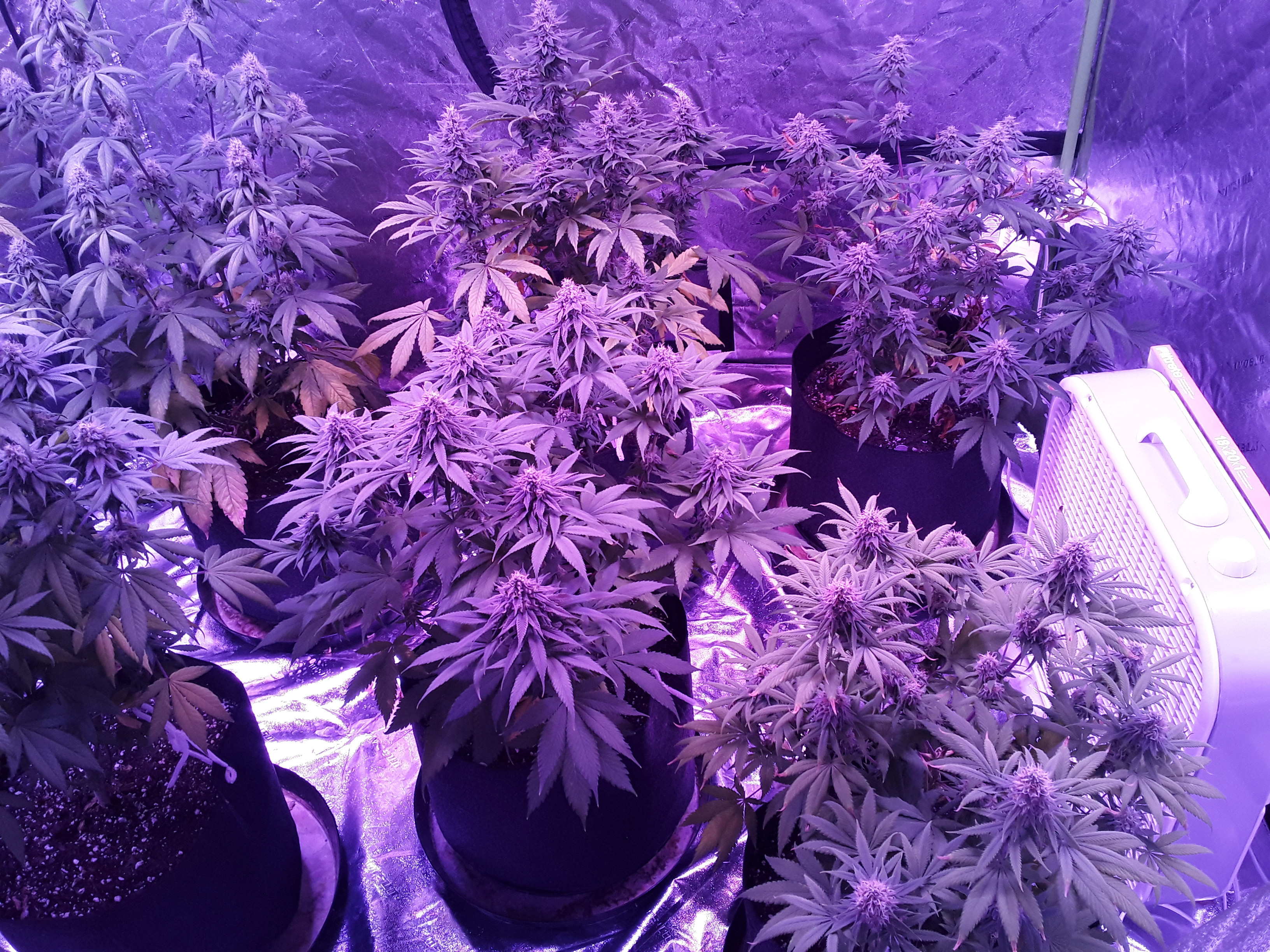 Almost there. A few days short of 8 weeks from 12/12 switch. I have about 80 buds the size of 8.4 oz redbull cans(some bigger some smaller, this seems like a good reference for average cola size)plus all the smaller buds. I cannot wait to make hash, been eyeballing extraction machines too. With my final yield it's looking like the money I will save from not having to buy will pay for all my gear. Plus some. Next go around I will be taking my savings and buying some sort of machine so I can make my own live rosin. Stay tuned for the goodies. They are close now.