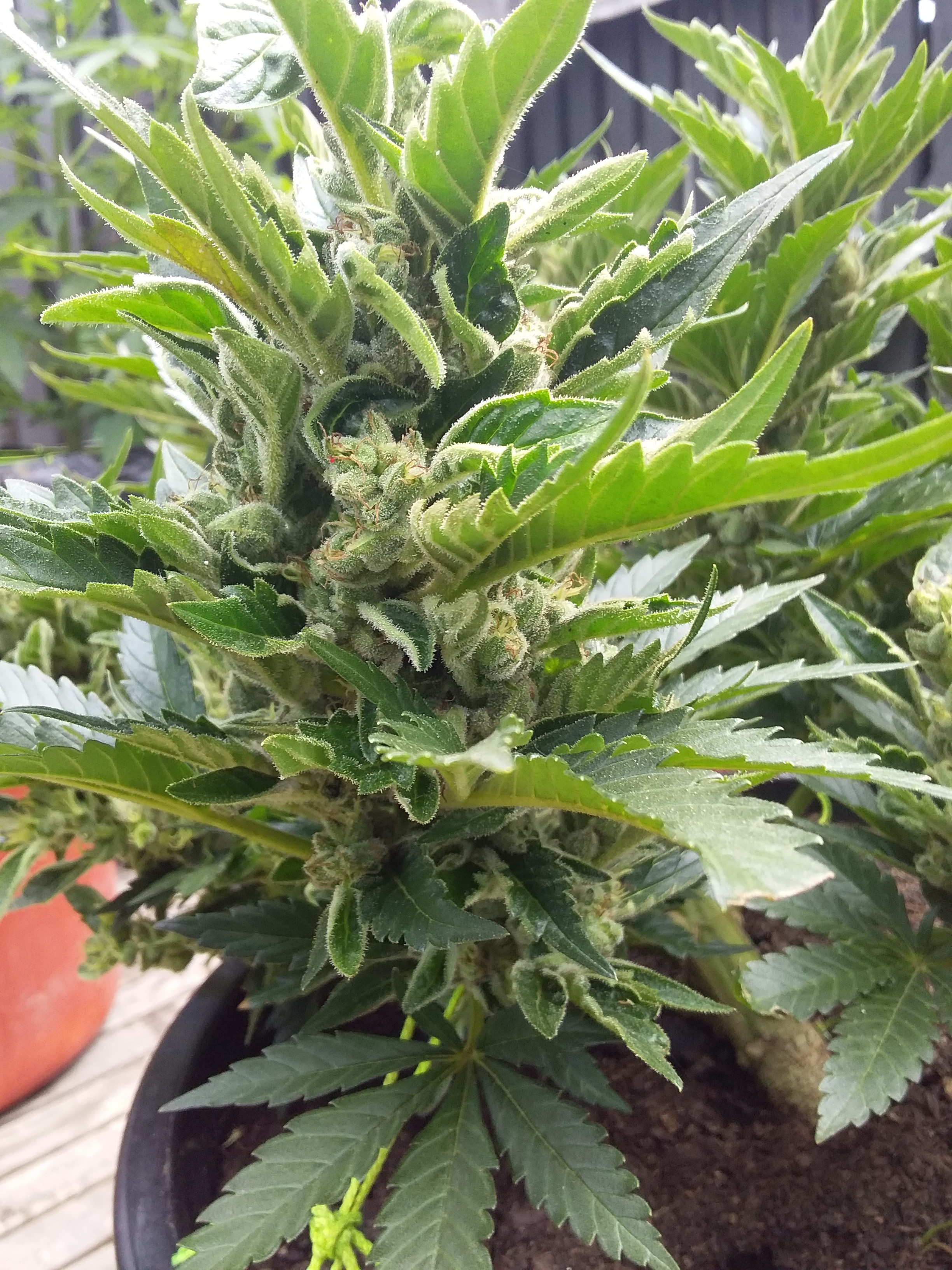How do i know when i have 2wks est left of budding so i can flush aswell as prep for drying heres 2 pics different plants the same plants that have serated edges of leaves curling inwards